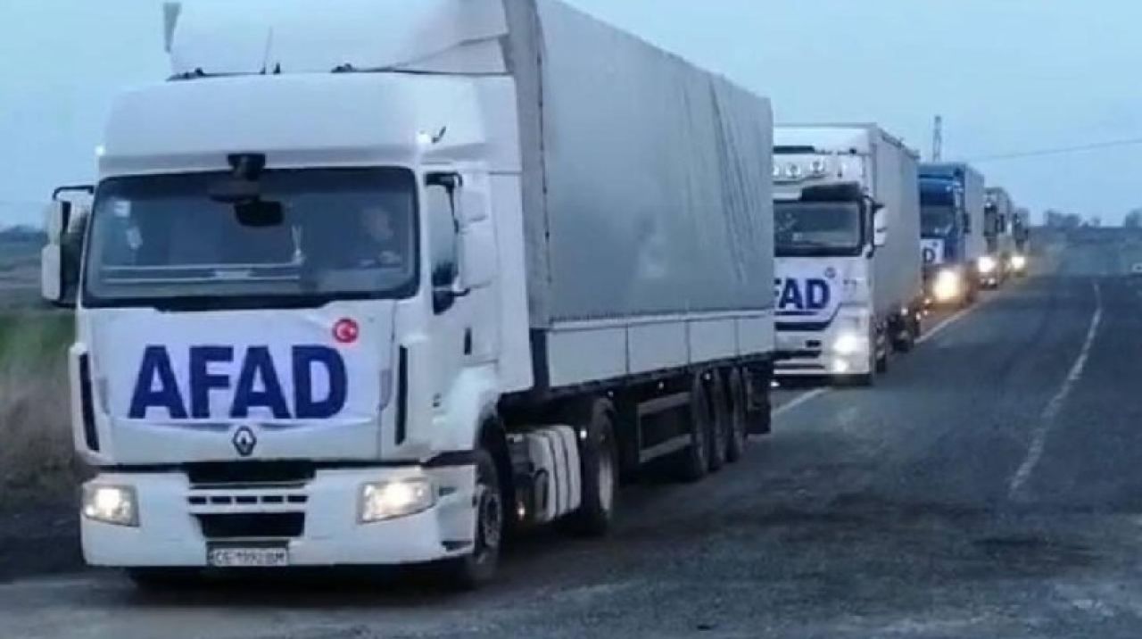 Türkiye'nin 27 Şubat’ta başlattığı insani yardım seferberliği kapsamında bölgeye bugüne kadar AFAD Başkanlığı tarafından 21 tır ve 1 mobil mutfak tırı, Sağlık Bakanlığı, belediyeler, Türk Kızılay ile özel sektör ve sivil toplum kuruluşlarınca 46 tır olmak üzere toplam 67 tır insani yardım malzemesi ve 1 mobil mutfak tırı sevk edildi.