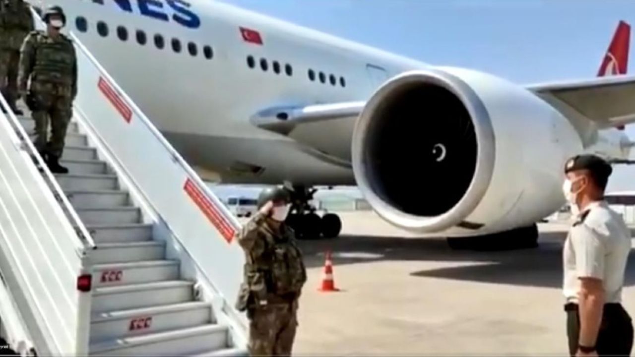 MSB'nin sosyal medya hesabından paylaşılan görüntüde, saat 11.45'te Ankara Esenboğa Havalimanı'na inen personelin uçaktan indiği anlara yer verildi.
