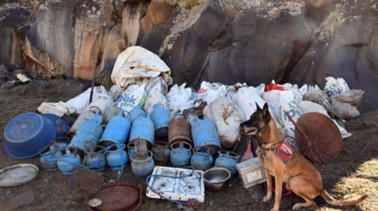 Narkotik dedektör köpeğiyle mağaraya girerek arama yapan ekipler, 57 boş mutfak ve 11 boş piknik tüpü, bir akü, 11 pil bloku, 37 çuval un, bir kablo, bir uyku tulumu, bol miktarda çamaşır ve çeşitli yaşam malzemeleri buldu.