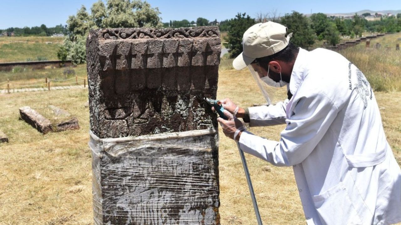 "Pandemi sürecinden dolayı bu yıl 1 Haziran'dan itibaren sahaya indik. Şimdilik 10 kişilik restorasyon ve 20 kişilik işçi ekibimizle ot biçme, liken ve taş temizleme çalışmalarına başladık. Mezarlık ve müze girişinde çalışmalarımıza devam ediyoruz. Bu yıl Türk Tarih Kurumu ile Kültür ve Turizm Bakanlığımız tarafından yapılan anlaşma neticesinde bir miktar proje bedeli verilecek. Bu kapsamda 60 taşın liken temizliği ve düzeltilmesi yapılacak. Elimizden geldiği kadar liken temizliği yapıp, taş düzeltmesi ve üzerindeki yazıların okunmasıyla ilgili çalışmalarımıza devam edeceğiz."