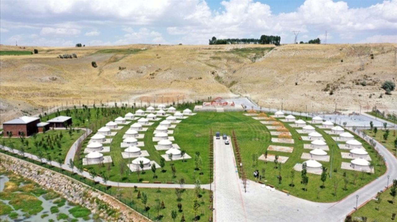 "Bir önemli çalışmamız da millet bahçesidir. Türkiye'de birçok yerde millet bahçesi inşa edildi, gözümüzü doldurdu, insanımızı mutlu etti ama buradaki millet bahçesi Türkiye'deki en nadide millet bahçelerinden biri. Sadece millet bahçesi değil, Türkiye'nin en gözde festival alanlarından birini de oluşturma şansı yakaladık. Bahçemizde köprü, kıraathanemiz, camilerimiz ve 80 bin metrekare yeşil alanımız var. Bugün ülkemizdeki yangınları görünce yaptığımız işin önemini anlıyoruz, vurguluyoruz. Bahçemize 5 bin ağaç dikimi gerçekleştirdik. Buna devam edeceğiz. 200 bin ağacın dikimiyle ilgili bir çalışma yürütüyoruz. En önemlisi Sultan Alparslan Otağı'nı burada kalıcı olarak inşa ettik."