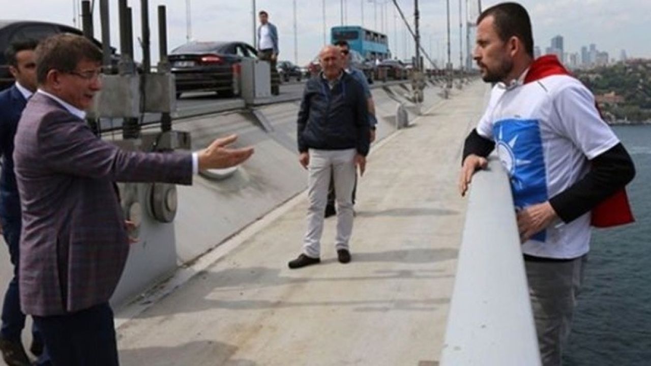 O sırada köprüden geçen eski başbakanlardan Ahmet Davutoğlu, intihar etmek isteyen genç adamı görünce aracını durdurdu. Üzerinde AK Parti logolu tişört ve Türk bayrağı bulunan vatandaş, Davutoğlu'nun ve koruma ekibinin çabalarının ardından ikna olarak korkuluklardan aşağı indi.