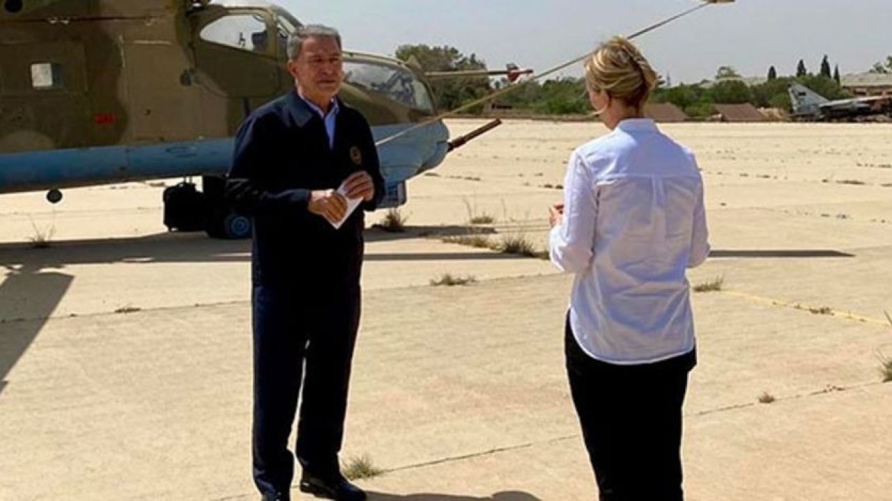 Dün Libya’ya giden Milli Savunma Bakanı Hulusi Akar’ın görüntüsü sosyal medyayı salladı. Akar, Libya'da ele geçirilen Rus yapımı Mi-24 helikopterinin önünde röportaj verdi.