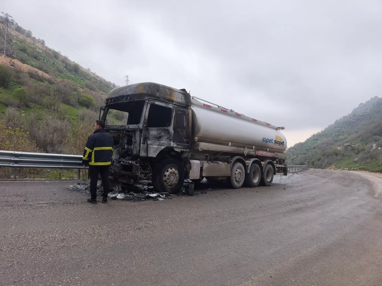 Kızılsu köyü yolunda S.İ. idaresindeki 01 APK 478 plakalı akaryakıt yüklü tankerde, henüz belirlenemeyen nedenle yangın çıktı.