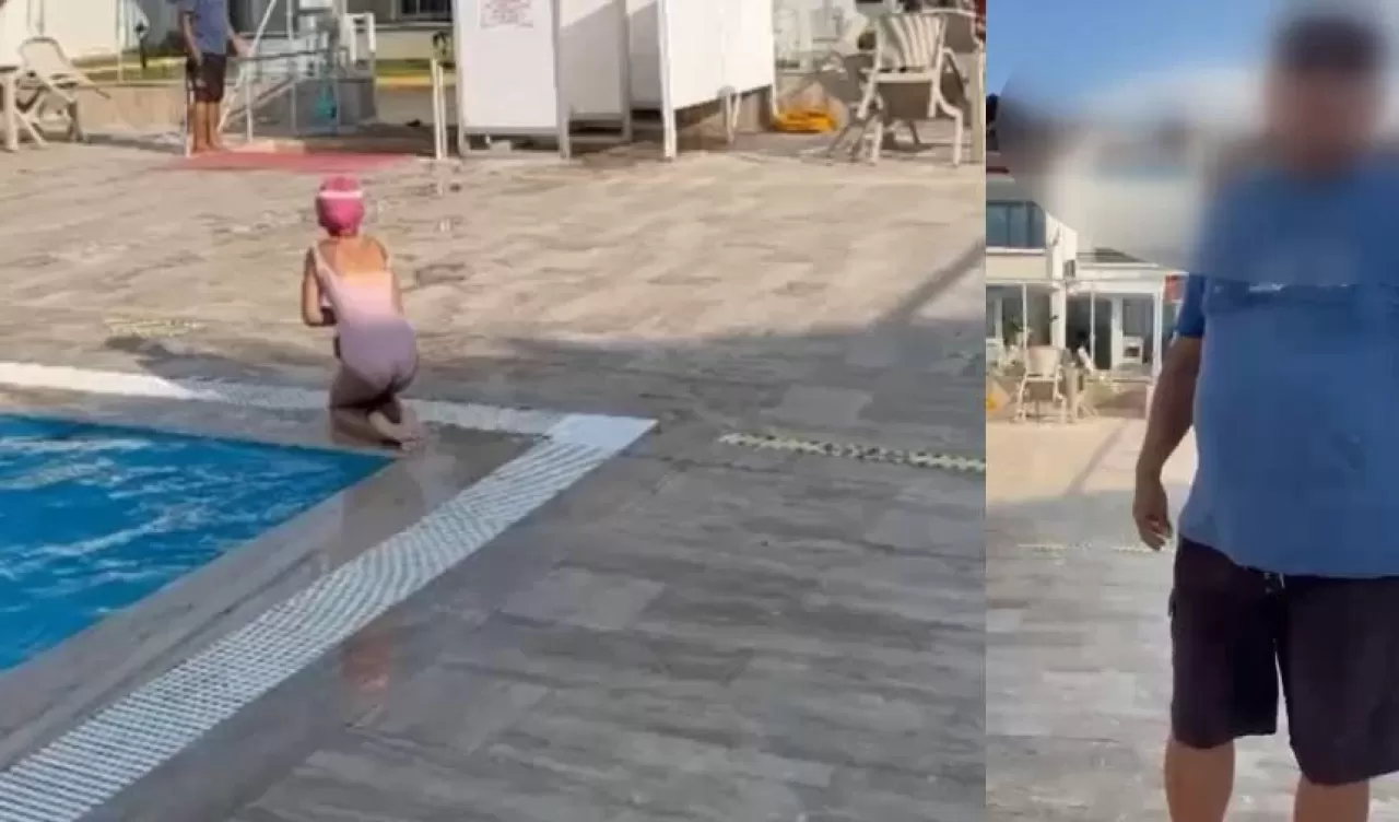 Görüntüde A.K., Meral Algün’ün haşema ile havuza girmesinin yasak olduğunu söylerken, “Buranın kuralı var” dedi. Daha sonra havuzun yanına gelen güvenlik görevlisi de “Buraya haşema ile girmek yasak” dedi. Kadının girmeye devam edeceğini söylemesi üzerine güvenlik görevlisi, “Havuzu kapatmak zorunda kalacağım” dedi. Havuz kadının girmemesi için kapatılırken, Meral Algün yaşananlara tepki gösterdi.