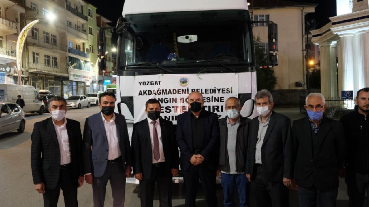 Akşam saatlerinde saat kulesi önünden hareket eden Akdağmadeni Belediyesi yardım tırını Akdağmadeni Belediye Başkanı Uzm.Dr.Nezih YALÇIN , Belediye Başkan Yardımcısı Mustafa AKPINAR ve Belediye Meclis üyeleri uğurladı.