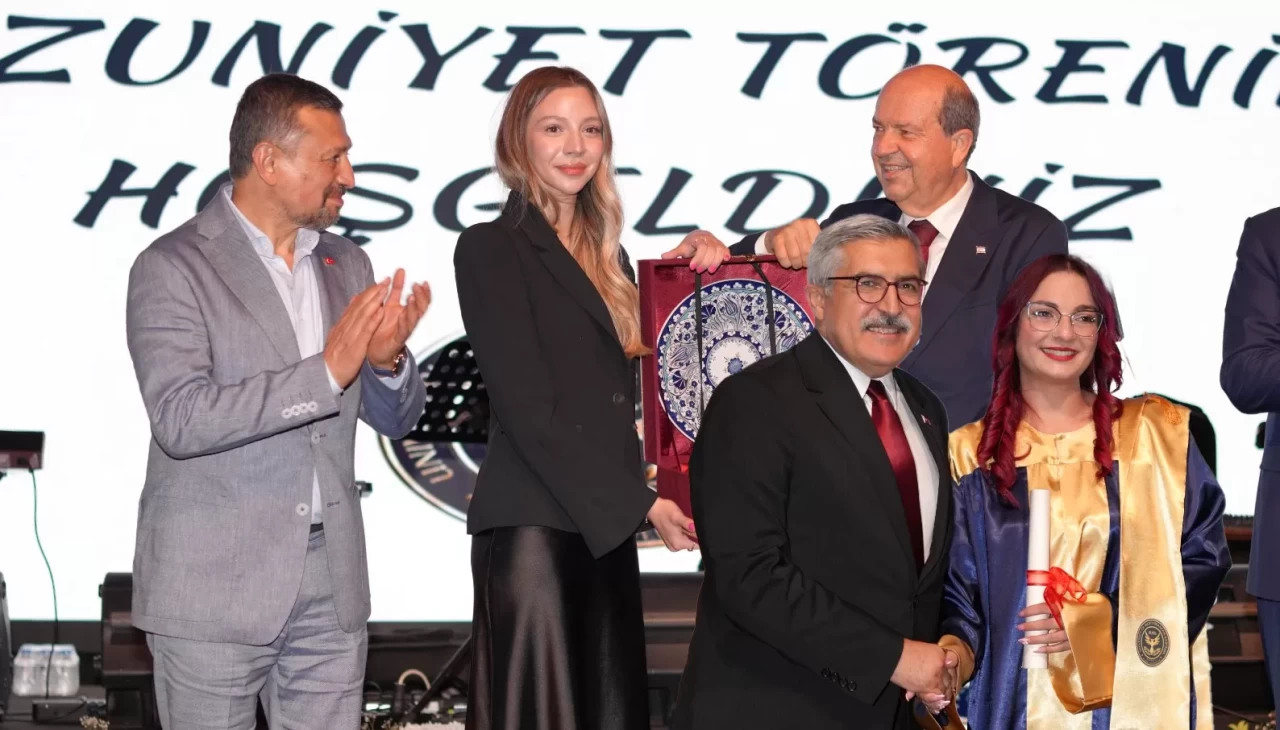 Bugün, 13 başarılı yılımızı geride bırakırken; 27 ülkeden öğrencisi bulunan, tüm kimliklere, yaşam tarzlarına açık ve bilgiyi ve hoşgörüyü merkeze alan bir üniversite olmanın gururunu taşıyoruz ve biz, burada yetişen her öğrencimizi yalnızca bir mezun değil, aynı zamanda bir bilim elçisi, bir barış savunucusu, bir gelecek mühendisi olarak görüyoruz. Siz sevgili mezun arkadaşlarım, her birinizin elindeki diplomaların arkasında kendi hikâyelerinizi görüyorum ve bununla gurur duyuyorum. Bu noktada, Türkiye Cumhuriyeti’nin kurucu atası Mustafa Kemal Atatürk’ün şu sözünü anımsatmak istiyorum: “Her gelişmenin ve kurtuluşun anası, hür düşüncedir.” Kendi yolumuzu çizebilmek, farklılıklarımızla birlikte var olabilmek ve geleceğe birlikte yön verebilmek… İşte bu özgür düşünceyle mümkün. Hepinize umutlu, özgün ve kendi sesinizi taşıyan bir hayat diliyorum. Ve Kıbrıs’ta bir evinizin olduğunu unutmayın.