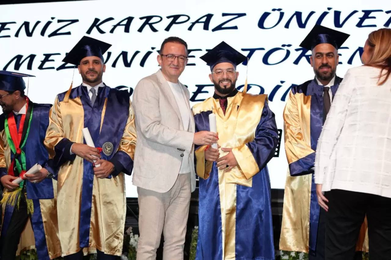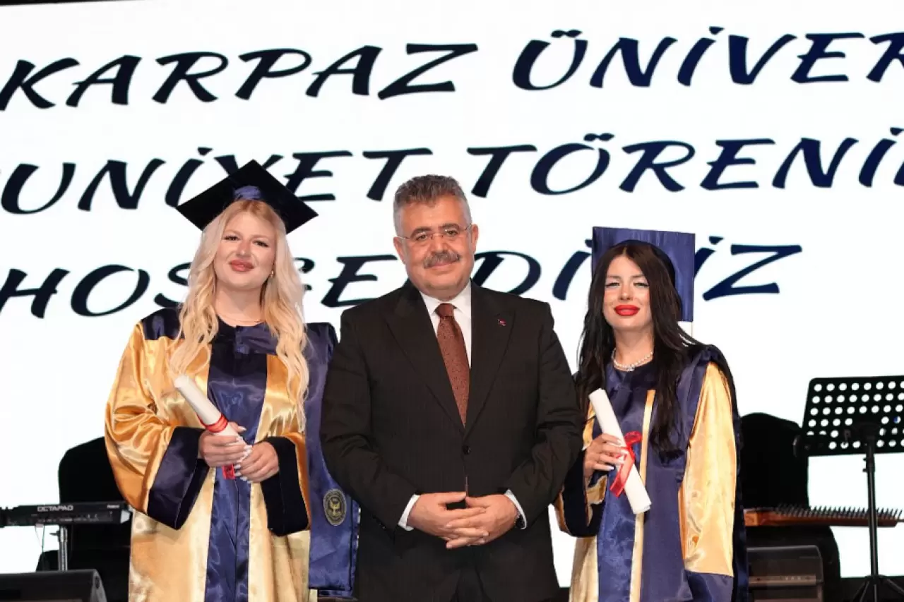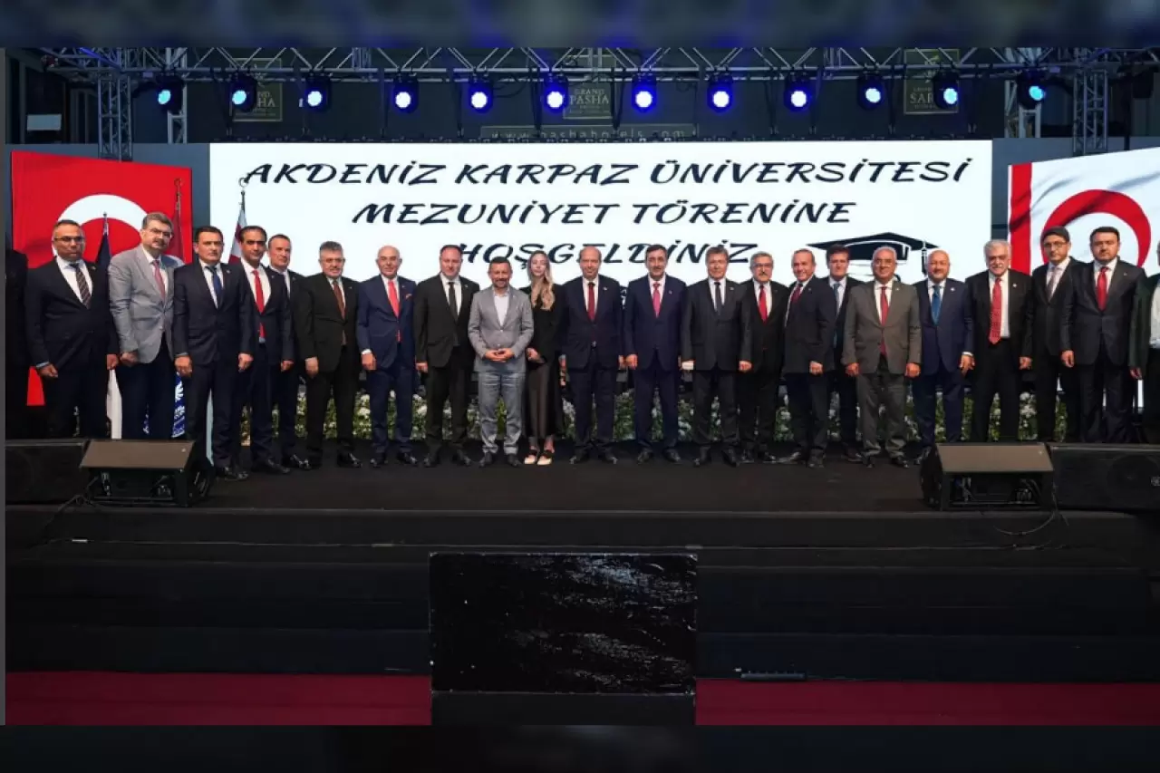 Akdeniz Karpaz Üniversitesi'nin 2024–2025 Akademik Yılı, düzenlenen görkemli bir törenle sona erdi. KKTC'de düzenlenen mezuniyet programına Türkiye Cumhurbaşkanı Yardımcısı Cevdet Yılmaz, KKTC Cumhurbaşkanı Ersin Tatar, bakanlar, milletvekilleri, belediye başkanları, gazeteciler, sanatçılar, STK temsilcileri ve bir çok davetli katıldı.