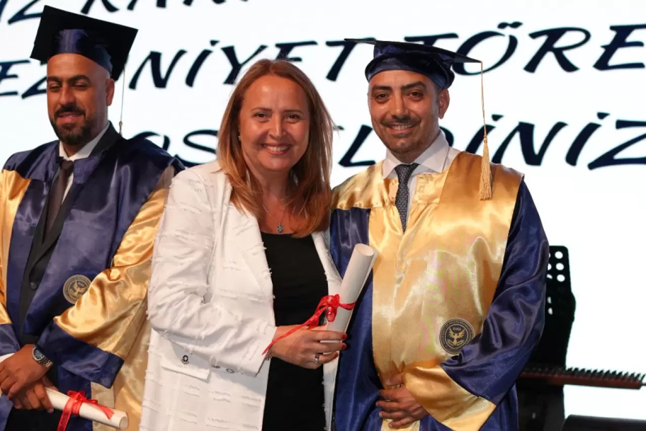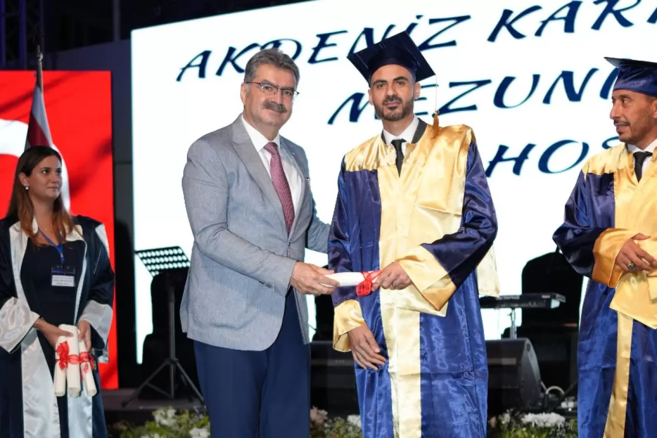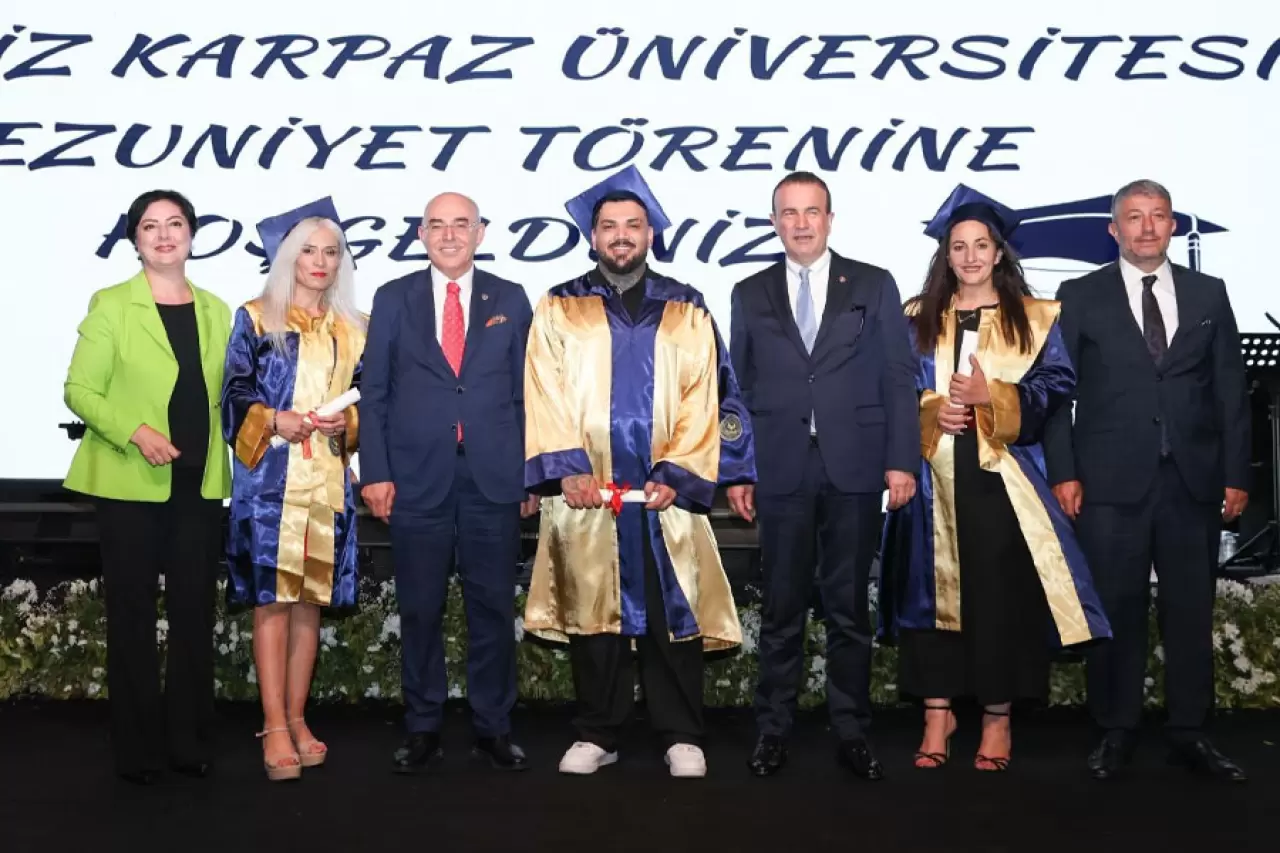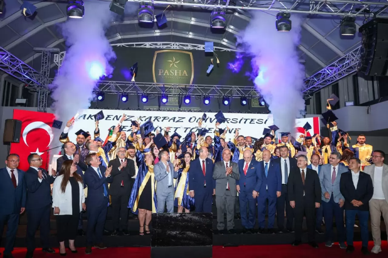 Akdeniz Karpaz Üniversitesi'nin 2024–2025 Akademik Yılı, düzenlenen görkemli bir törenle sona erdi. KKTC'de düzenlenen mezuniyet programına Türkiye Cumhurbaşkanı Yardımcısı Cevdet Yılmaz, KKTC Cumhurbaşkanı Ersin Tatar, bakanlar, milletvekilleri, belediye başkanları, gazeteciler, sanatçılar, STK temsilcileri ve bir çok davetli katıldı.