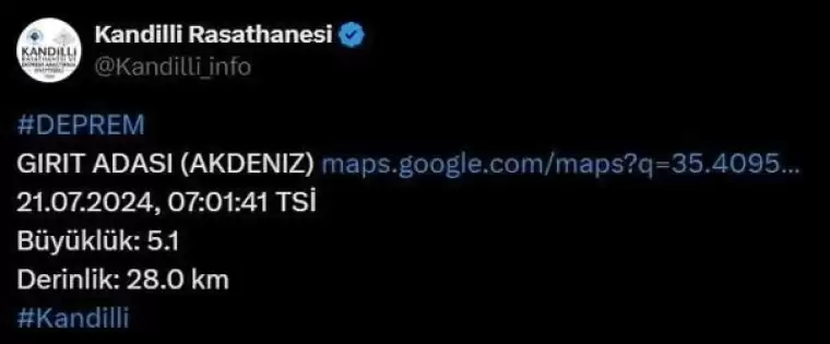 Depremin ardından AFAD ve Kandilli Rasathanesi verileri paylaştı.
