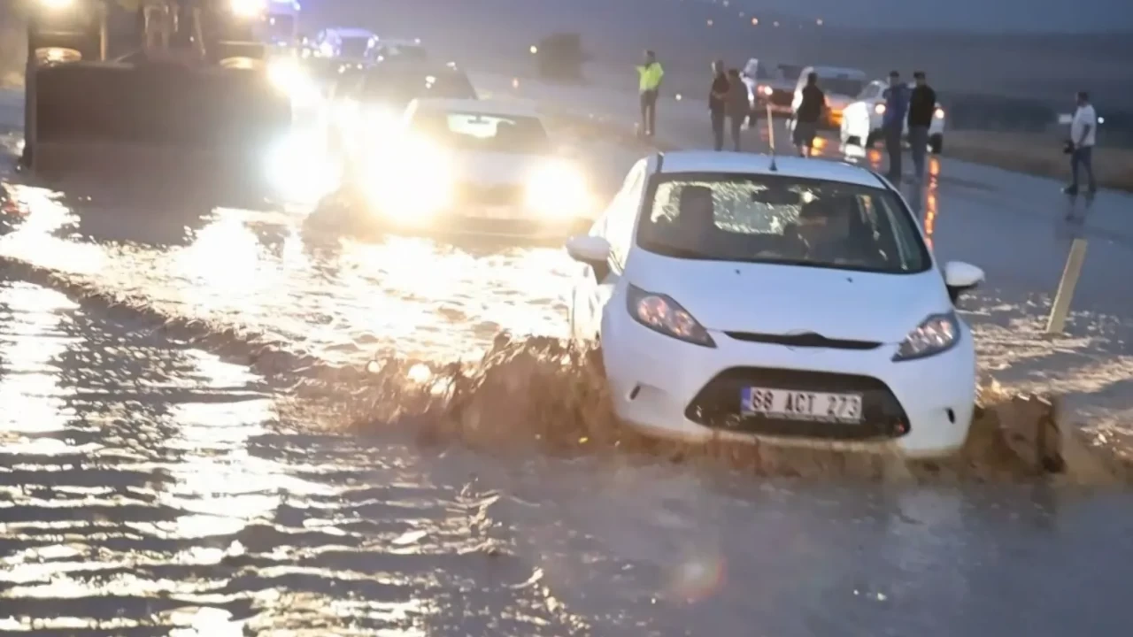 Aksaray'ın yüksek kesimlerinde akşam saatlerinde başlayan sağanak kısa sürede etkisini artırarak sele neden oldu. Birçok tarım arazisi ve köylerde sel baskınları yaşanırken, Aksaray-Nevşehir karayolu göle döndü. Kilometrelerce araç kuyruğunun oluştuğu yolda araçlar mahsur kalırken, yol İl Emniyet Müdürlüğü Bölge Trafik Şubesi ekiplerince trafiğe çift yönlü olarak kapatıldı. Bu sırada olay yerine karayolları ekipleri sevk edildi. Kısa sürede kepçe ve greyderler ile karayoluna intikal eden karayolları ekipleri, polis ekiplerinin geniş güvenlik önlemi aldığı karayolunda yol ama çalışması yapıyor. Yol çift şeritli olarak halen trafiğe kapalı kalırken, ekiplerin hummalı çalışmaları devam ediyor.