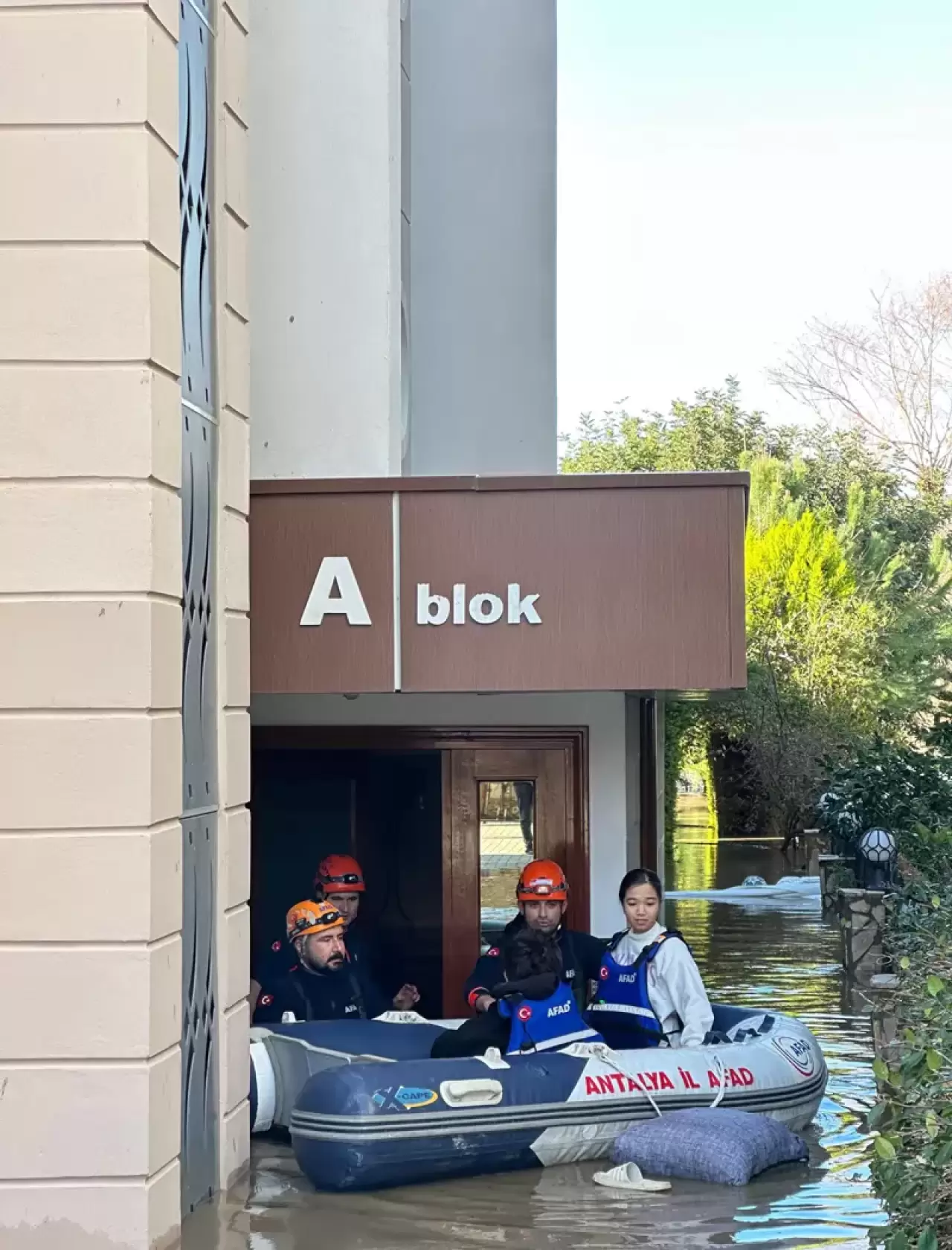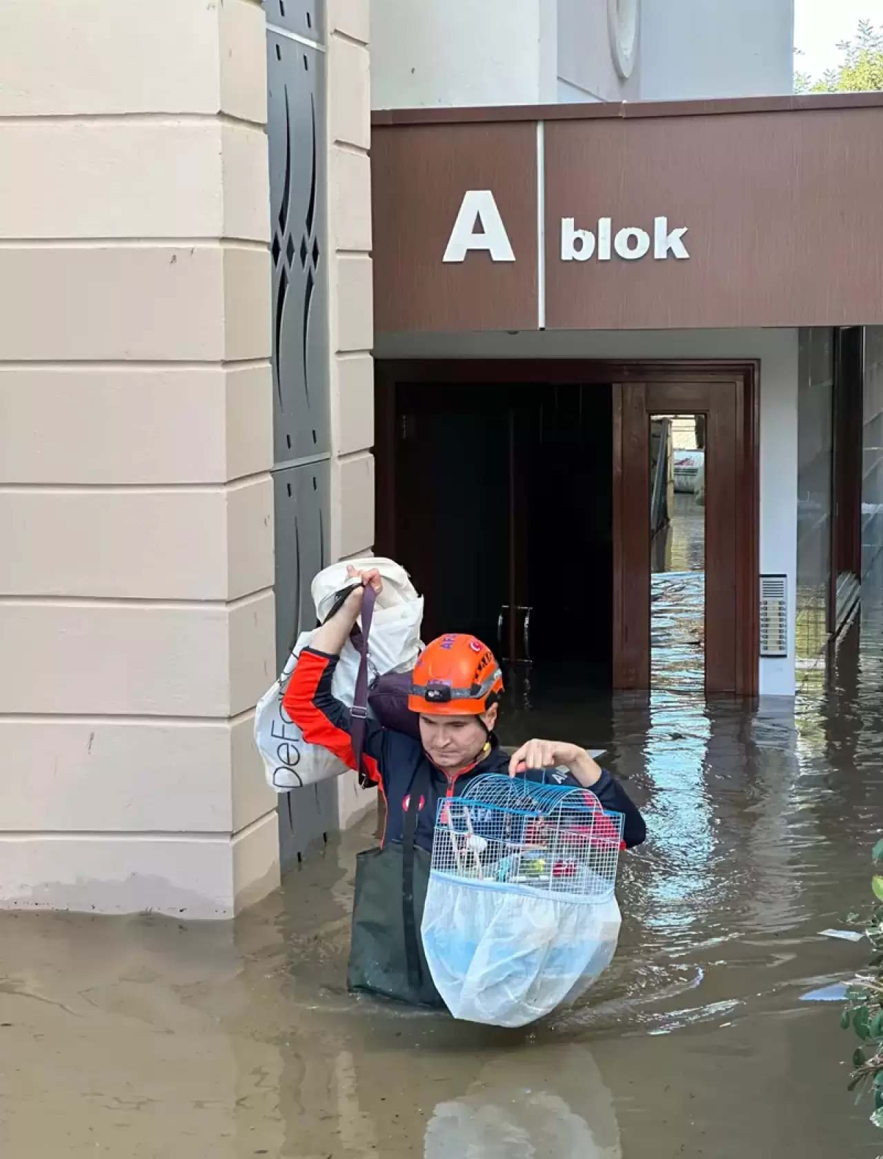 Su baskını yaşanan bölgede AFAD ekipleri, evlerinden çıkamayanları ve evcil hayvanları botlarla tahliye etti.