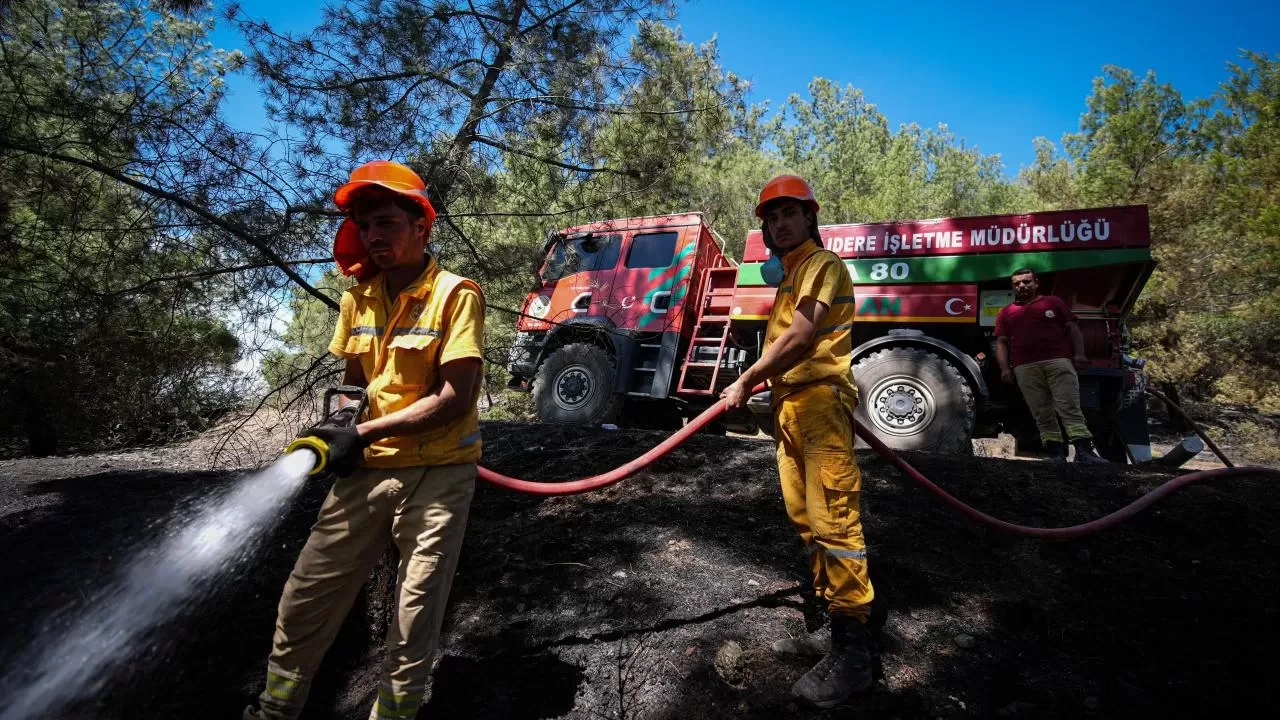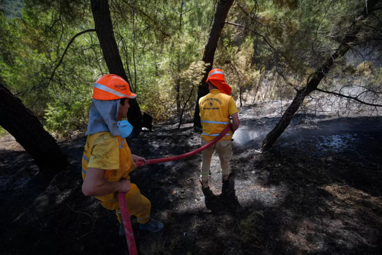 Türkiye'nin çeşitli kentlerinden bölgeye gelen kara ekipleri, yanan alanların içerisine korkusuzca girerek, alevlerin yeniden yükselmesini önlemeye çalışıyor.