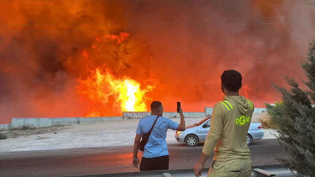 Bu arada bazı binaların alevler arasında kaldığı gözlendi.