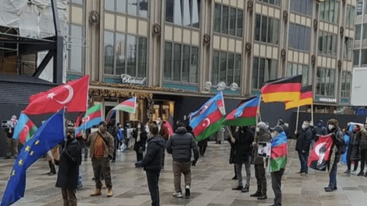 Alman Azerbaycan Medeniyet Evi tarafından tarihi Köln Katedrali önünde düzenlenen mitingde, Karabağ'da Gence, Terter ve Berdeki'de bulunan sivil yerleşimlerine Ermenilerce düzenlenen saldırılar protesto edildi.