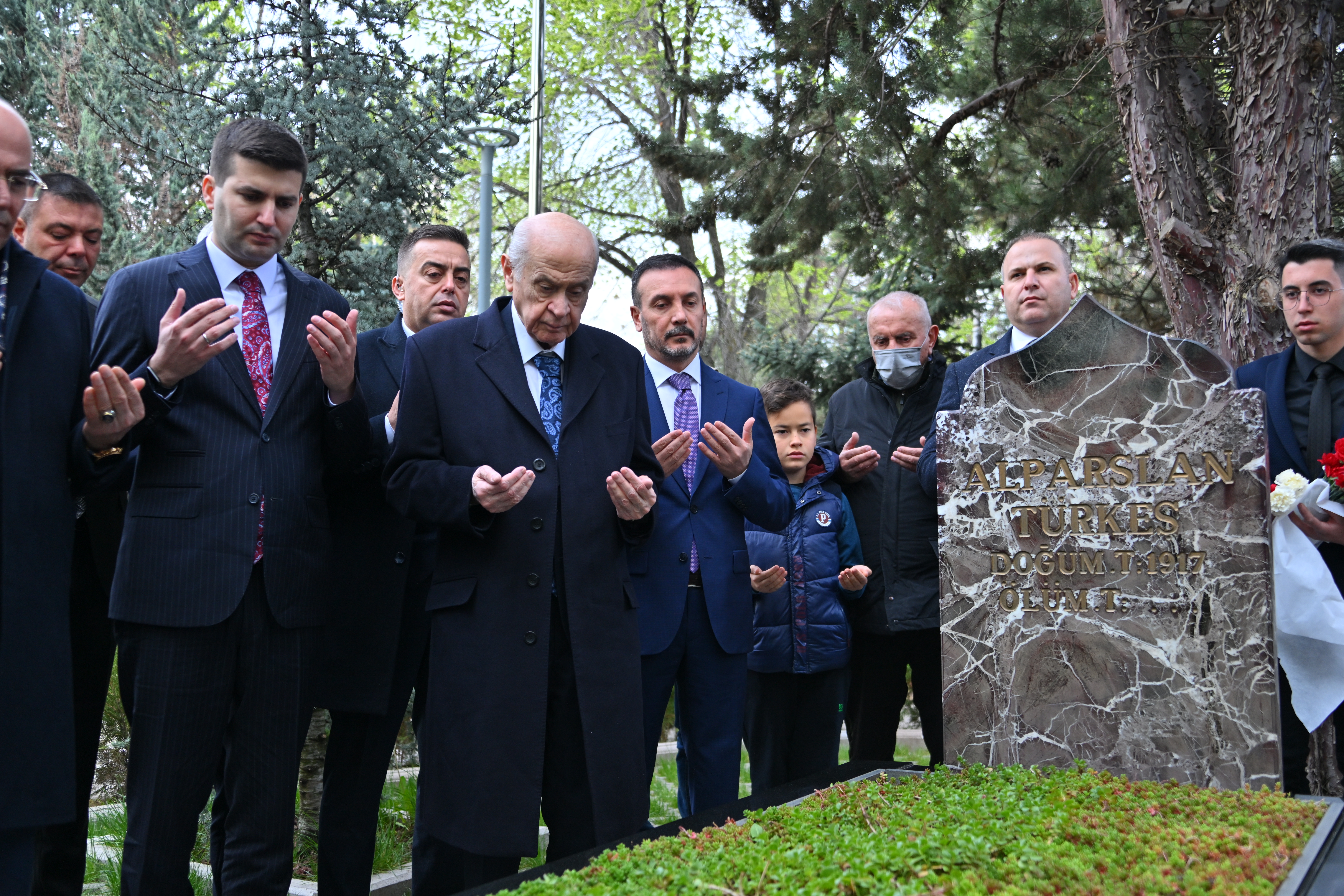 MHP Genel Başkanı Devlet Bahçeli, bayram namazının ardından MHP'nin kurucu Genel Başkanı Alparslan Türkeş'in Beştepe'deki anıt mezarını ziyaret etti.