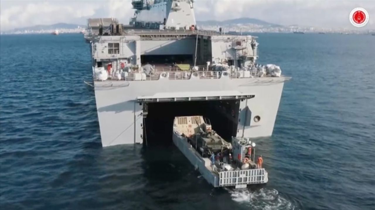 Mekanize Çıkarma Aracı LCM ile askeri tersaneden alınan Altay tankı, önce ANADOLU gemisine yüklendi, ardından yine LCM'ye alınarak sahile çıkarma operasyonu gerçekleştirildi. pic.twitter.com/hNiiPWvv86
