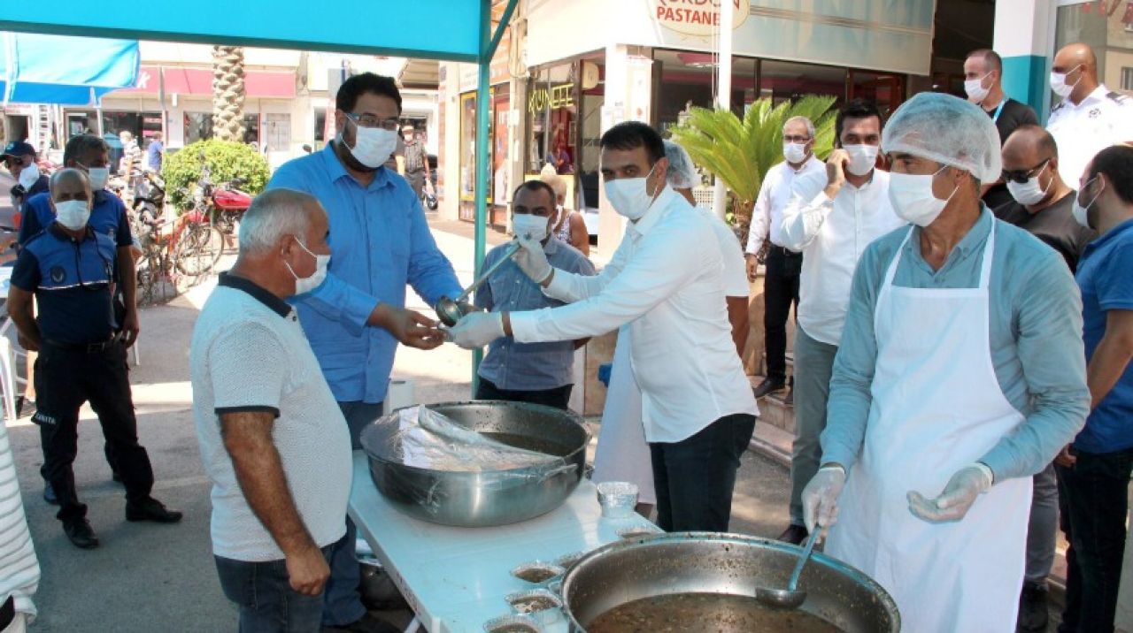 Belediye hizmet binası önünde korona virüs tedbirleri kapsamında hazırlanan aşureleri kendi elleri ile belediye personellerine ve vatandaşlara ikram eden Başkanvekili Altunok, Muharrem ayının paylaşma ve muhabbet ayı olduğunu belirtti.