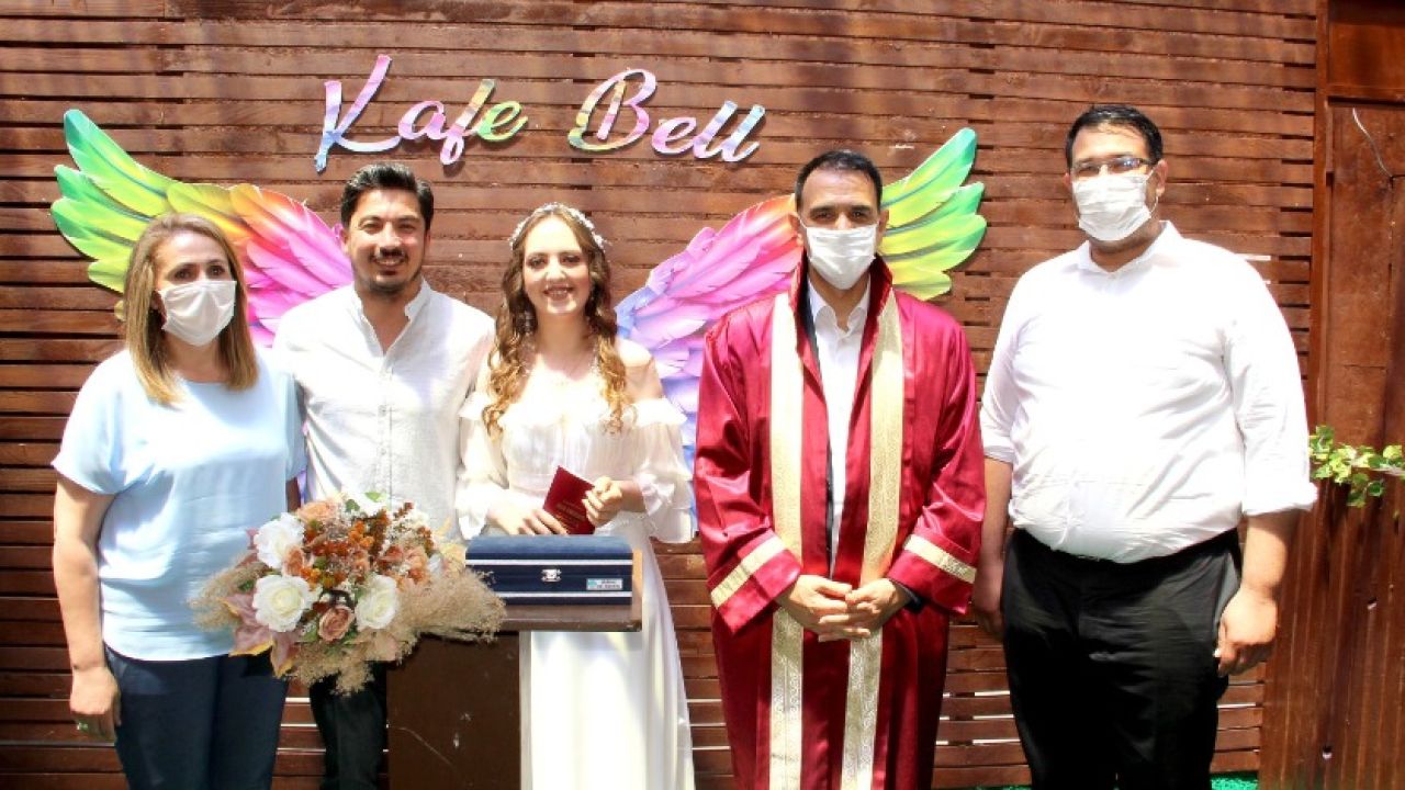 Korona virüs tedbirlerinin uygulandığı nikah töreni Göksu Mahallesi Kafe-Bell’de gerçekleşti. Genç çiftlerin ve ailelerin bu mutlu günlerinde yanlarında bulunarak çiftin nikah akdini gerçekleştirmekten dolayı sevinç ve heyecan duyduğunu belirten Başkanvekili Altunok, kurulan yuvanın hayırlı uğurlu olmasını diledi.