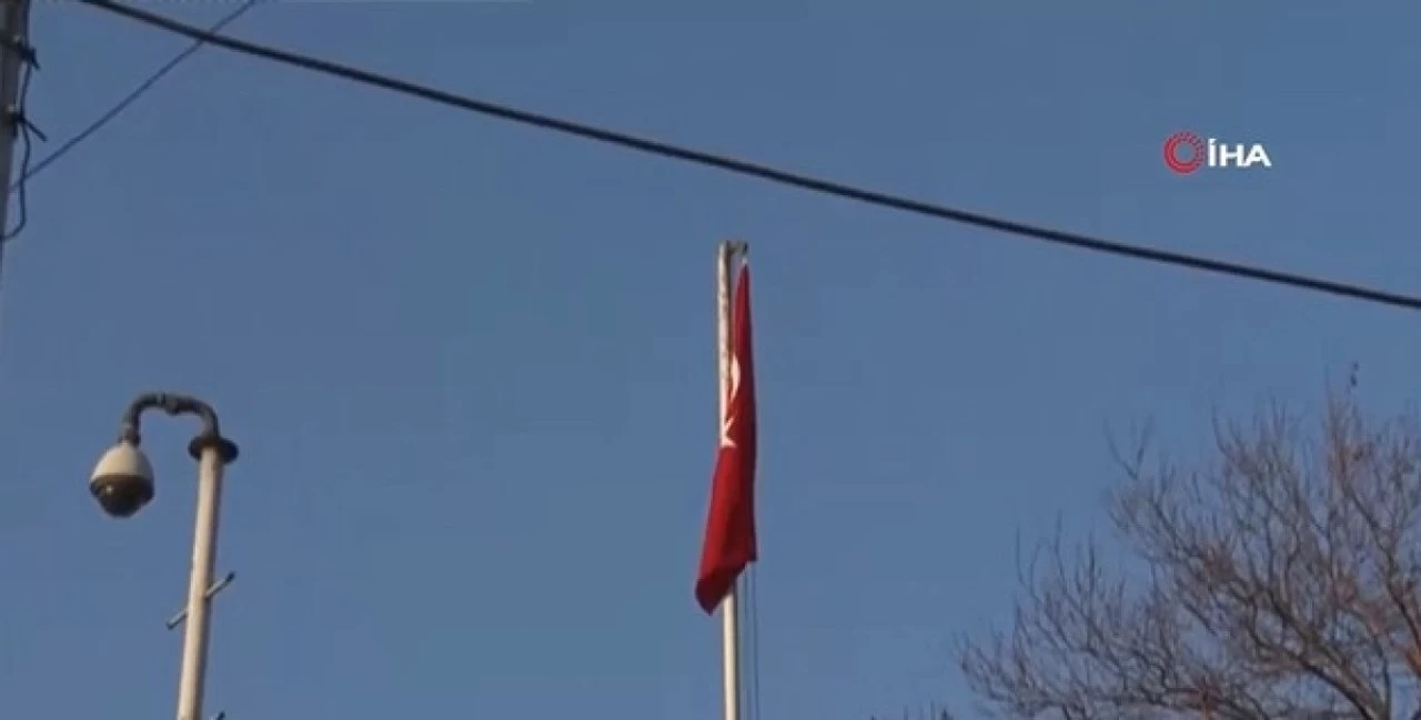 Büyükelçilik konutunda Türk bayrağı göndere çekildi.