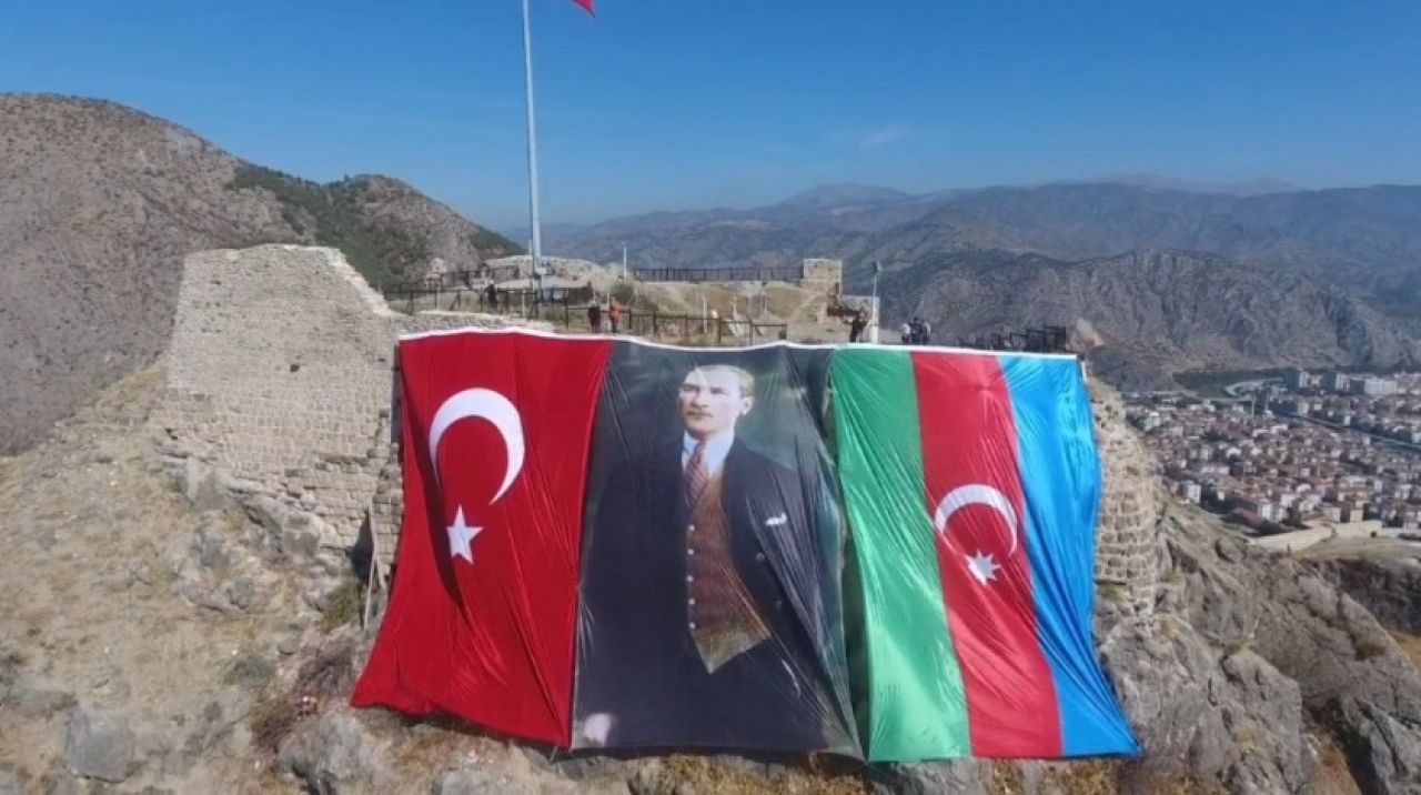 Azerbaycan topraklarına yapılan saldırılar sonucu başlatılan operasyona destek veren Amasya Belediye Başkanı Mehmet Sarı, 300 metre yükseklikteki Harşena kalesinin burçlarına 15 metre uzunluğunda 10 metre genişliğinde olan dev Türkiye, Azerbaycan bayrakları ve Gazi Mustafa Kemal Atatürk posteri astırdı.