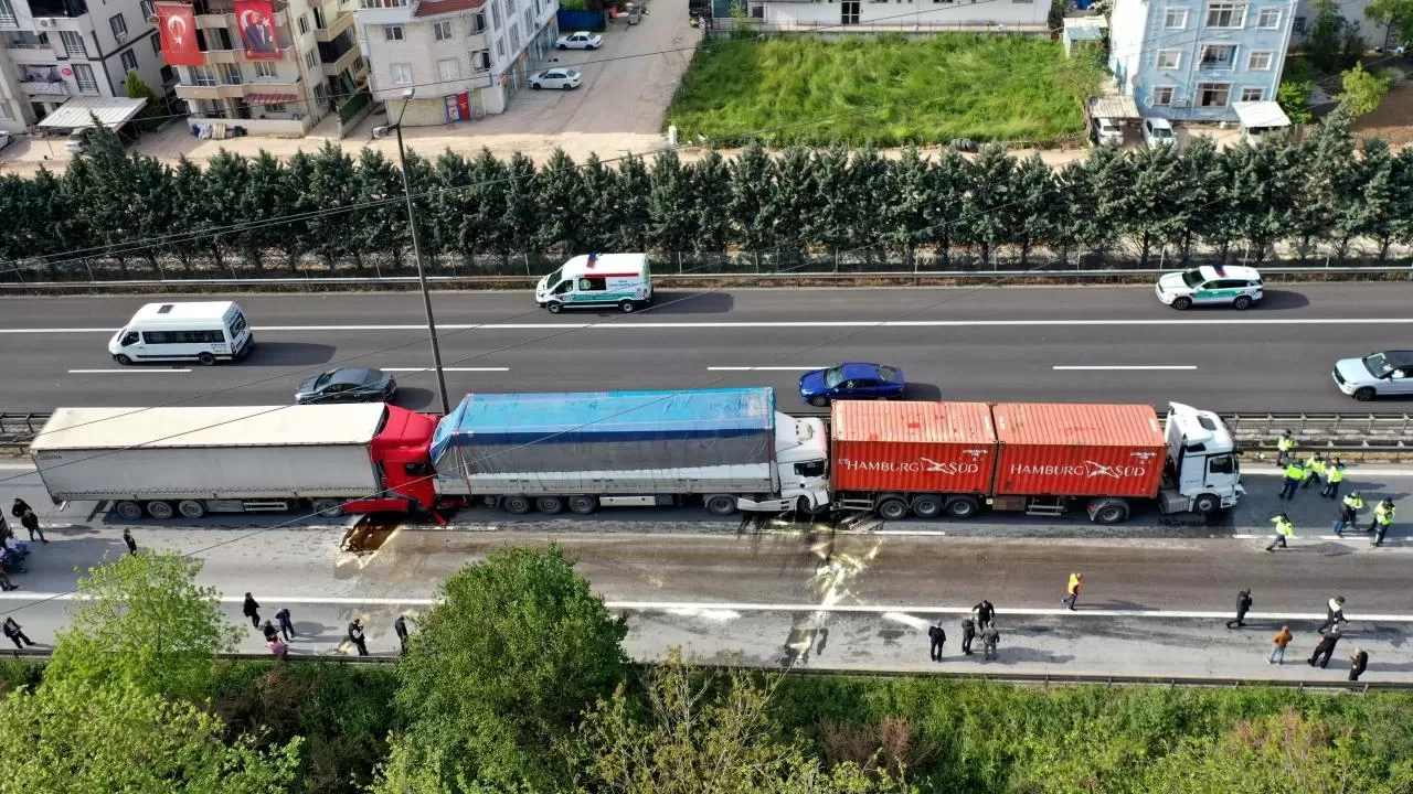 Anadolu Otoyolu'nun Ankara istikameti İzmit ilçesi Alikahya mevkisinde 6 tırın karıştığı zincirleme kaza meydana geldi.
