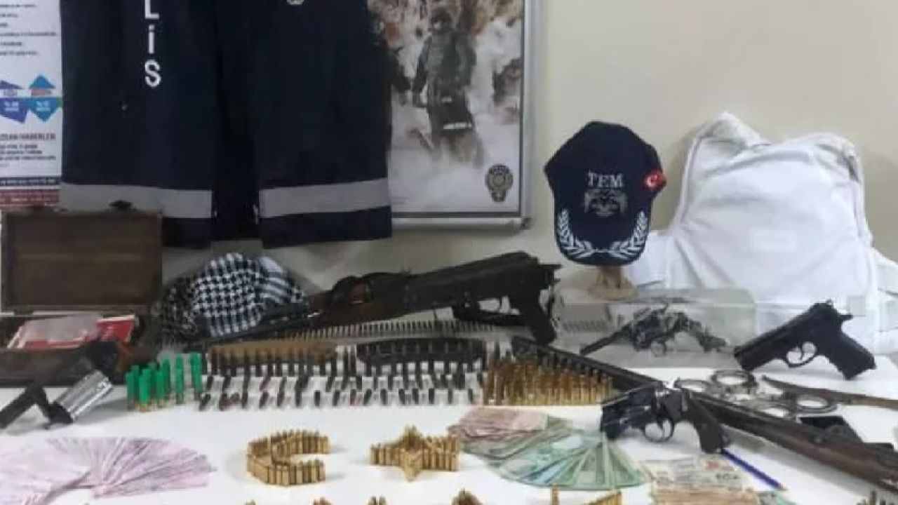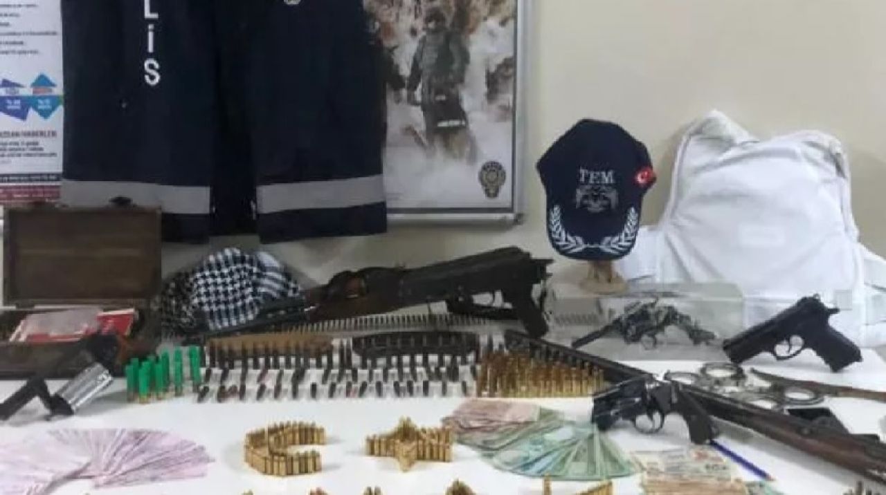 Araçta yapılan aramada 1 adet AK-47 Kaleşnikof tüfek ve şarjör içerisinde 26 adet mermisi, 3 adet ruhsatsız tabanca, 1 adet tarihi nitelikli av tüfeği, çeşitli kılıç ve kasaturalar, 2 adet özel yapım bıçaklı baston, çeşitli çap ve markalarda 400 adet mermi, 1 adet balistik yelek, 1 adet polis yeleği, 2 adet kelepçe, 1 adet çelik cop, 20 bin TL para ve diğer muhtelif evraklar ele geçirildi. Yakalanan zanlı Ankara Organize Suçlarla Mücadele Şube Müdürlüğü ekiplerine teslim edildi. Şüpheli, buradaki sorgusunun ardından sevk edildiği adli makamlarca tutuklandı.İHA