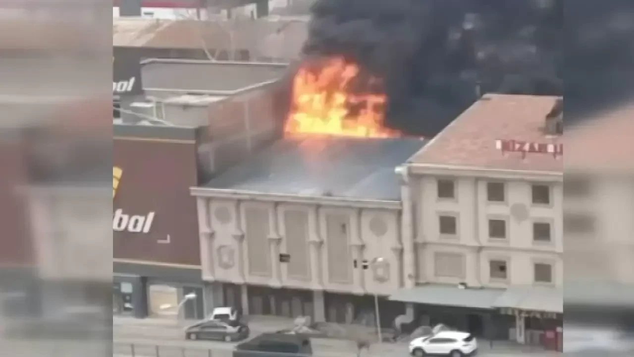 Ekipler alevlerin bitişikteki binaya sıçramaması için yoğun çaba harcarken, yangına müdahale sürüyor.