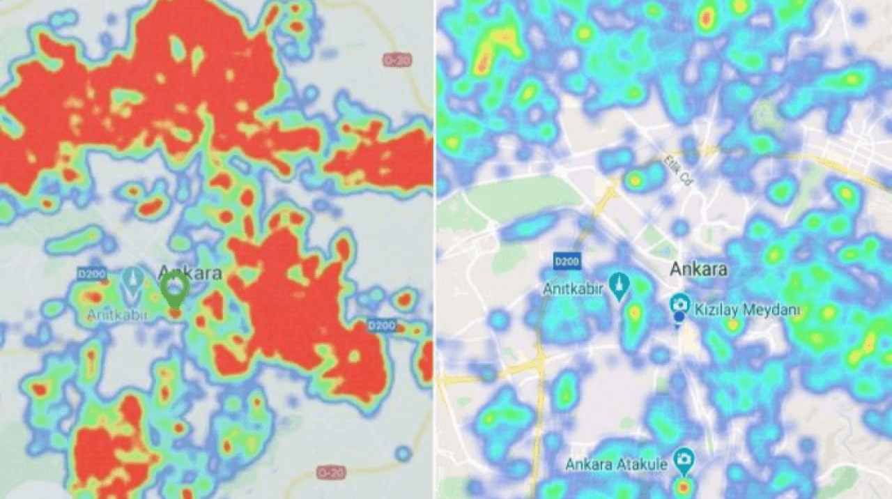 Bu durum Sağlık Bakanlığının HES mobil uygulamasındaki koronavirüs yoğunluk haritasına da yansıdı. Yaklaşık 1,5 ay önce haritada kırmızı olan alanlar, vaka oranının düşmesiyle birlikte yeşile döndü.