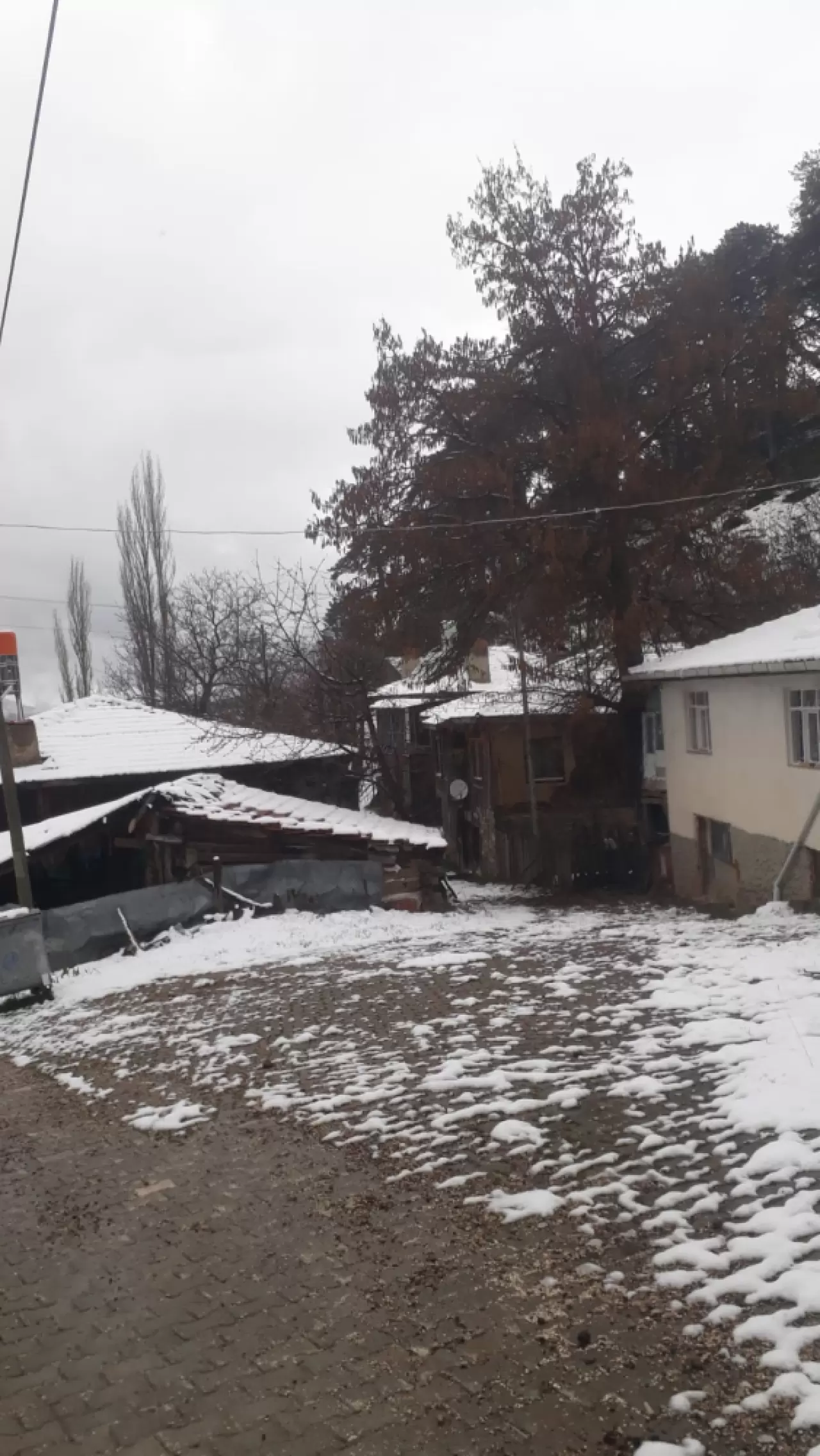 Döğmeci köyünde etkili olan sağanak, sabah saatlerinden itibaren yerini kar yağışına bıraktı.