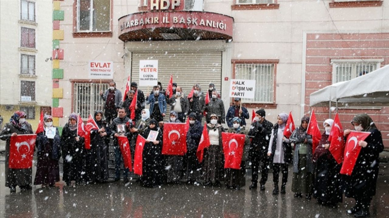 Çocuklarının dağa kaçırılmasından HDP'yi sorumlu tutan ailelerin 3 Eylül 2019'da başlattığı oturma eylemi 929'uncu gününde kar yağışı ve soğuk havaya rağmen sürüyor.