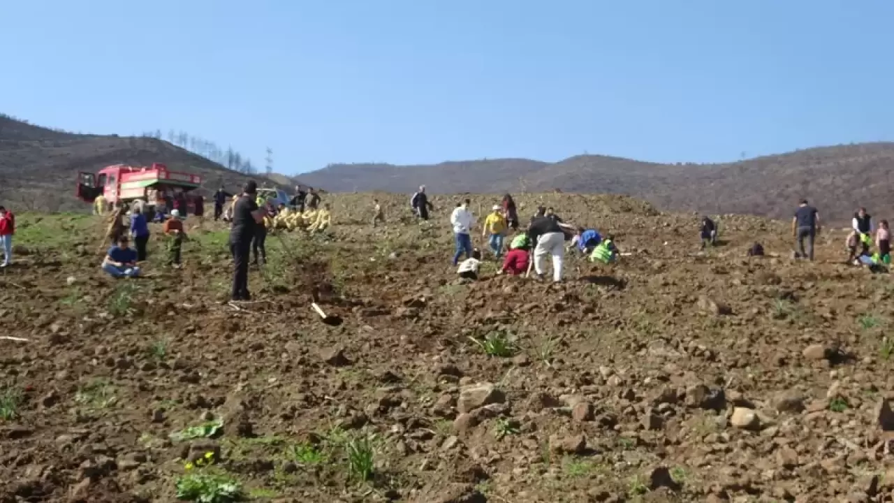 Ormanı yeniden canlandırmak için 30 bin fidan dikmeyi amaçladıklarını söyleyen Soner Demir, "Burada fidan dikmek için toplandık. Ormanlık alanda çıkan yangınlardan dolayı arazilerimizde bir sürü ağaçlar yandı, bu alanın tekrardan yeşillendirmek için buradayız. Buraya ortalama yaklaşık 30 bin fidan dikeceğiz ama 5 bin adet fidan getirdik. Ramazan Ayından dolayı fazla dikim yapamadık, şu ana kadar bine yakın dikim yaptık geri kalanını Ramazan ayından sonra dikeceğiz. Sonrasında orman işletme şefliğindeki arkadaşlarla birlikte 30 bin fidanı toprakla buluşturacağız. Amacımız doğaya destek ve doğanın bize desteğini görüyoruz. Biz de doğaya destek vermek istiyoruz. Ormanda çıkan yangınların yüzde 90'ı insanlardan dolayı ve insanlar direkt yakmasa bile attığı çöp, mangal ve sigara orman yangınlarına sebep oluyor. Bilinçlenmemiz gerekiyor ve daha çok insanlar aileden ve okuldan başlar. Çocuklarımızı bilinçlendirirsek, orman yangınlarının önüne çıkabiliriz. Yeter ki fidan dikelim, ormanlarımız yeşersin" ifadelerini kullandı.