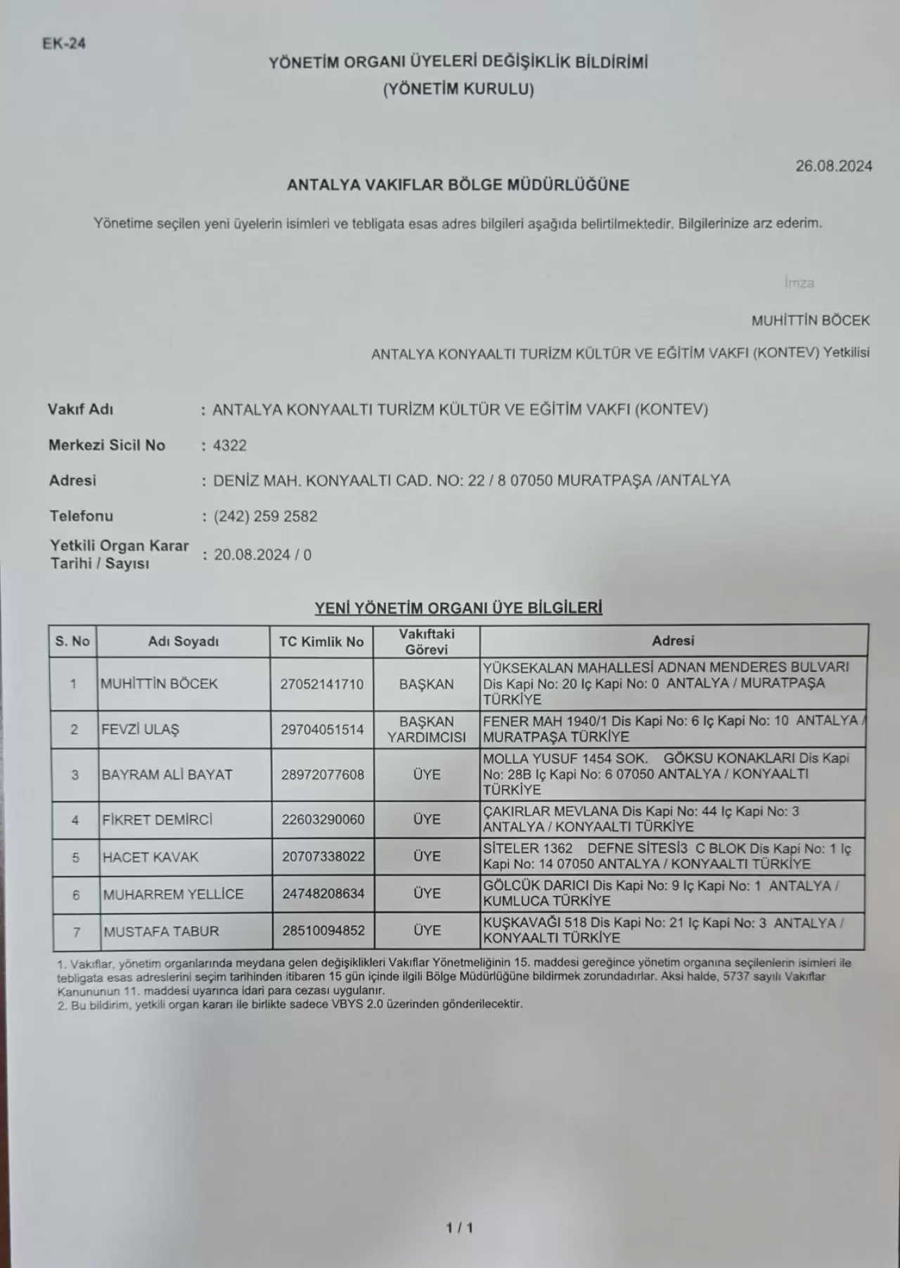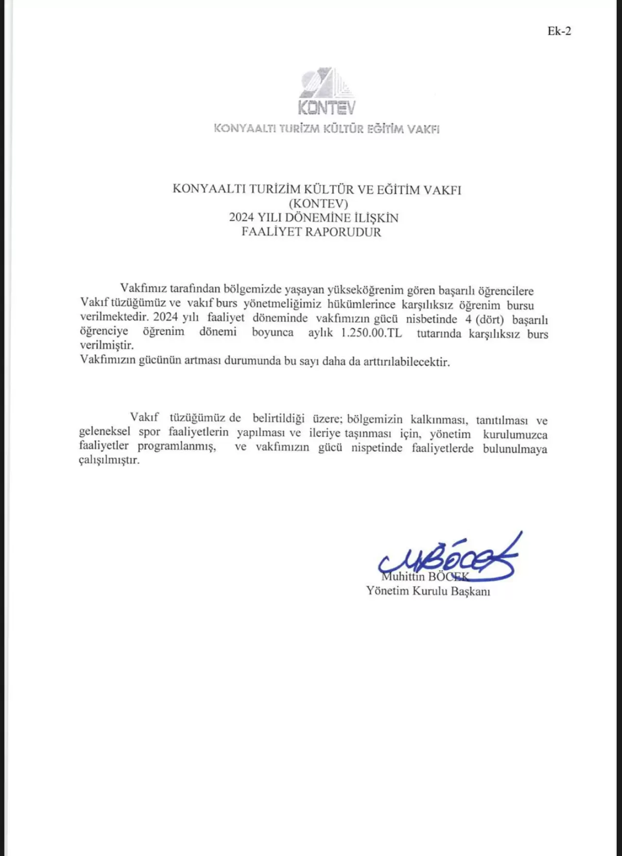 Paraların gönderildiği Konyaaltı Turizm Kültür ve Eğitim Vakfı’nın, Muhittin Böcek tarafından yeniden aktifleştirildiği, vakfın başkanının Böcek, genel müdürünün ise Antalya Büyükşehir Belediyesi Genel Sekreteri Cansel Tuncer olduğu belirlendi. Eğitim bağışı adı altında milyonlarca lira alan vakfın, Vakıflar Genel Müdürlüğü kayıtlarına göre bugüne kadar yalnızca 4 öğrenciye eğitim desteği sağladığı belirlendi.
