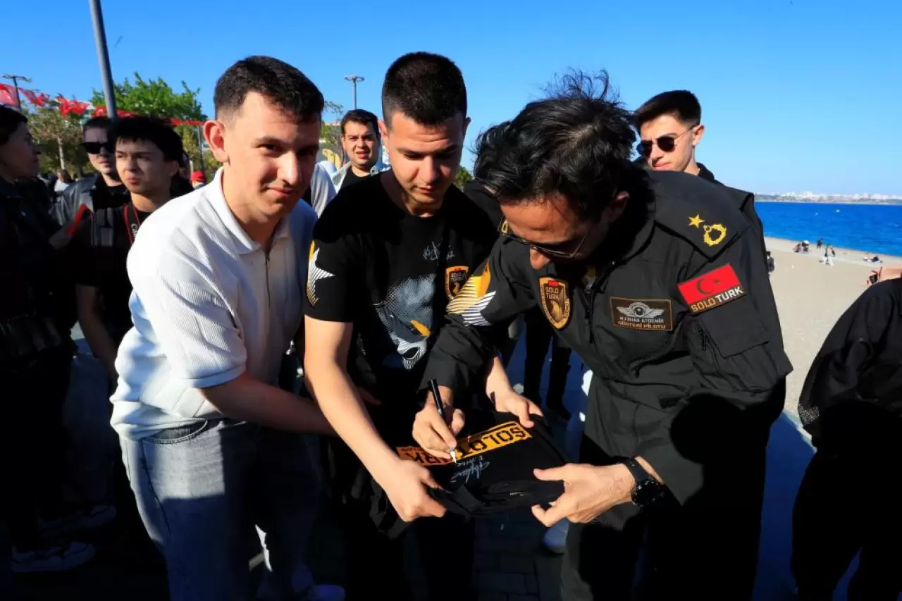 Konyaaltı Sahili'ne gelen binlerce vatandaşa unutulmaz anları cep telefonları ile fotoğraflayarak kayda aldı. Bazı vatandaşlar ise gösteriyi yönetmek üzere Olbia Kent Meydanı'nda bulunan SOLOTÜRK pilotları ile fotoğraf çekinerek tişörtlerini imzalattı.