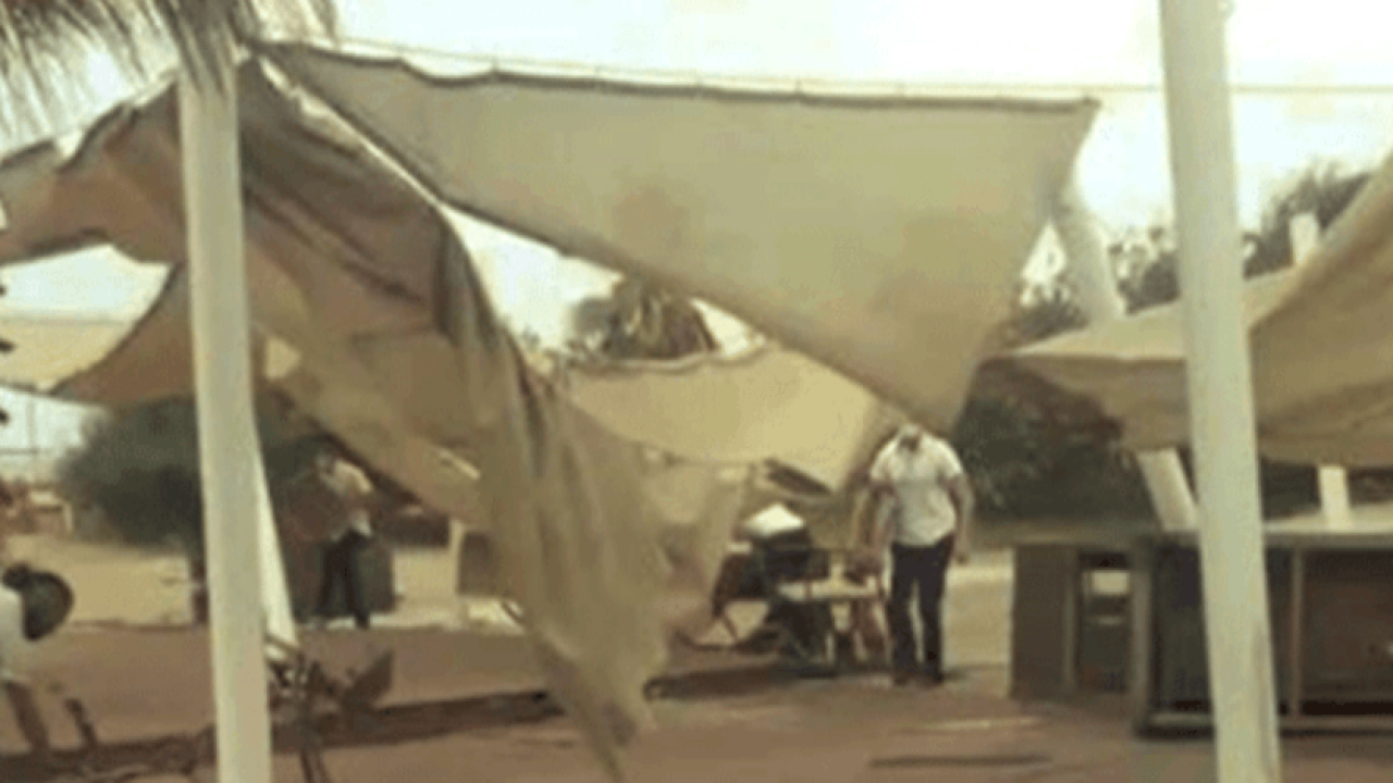 Otel içinden cep telefonuyla çekilen görüntülerde bahçedeki şemsiyelerin hortumun şiddetiyle parçalanıp savrulması saniye saniye kaydedildi. Yaklaşık 3 dakika devam eden hortum daha sonra etkisini kaybederken, geriye dağılmış haldeki bahçe kaldı.