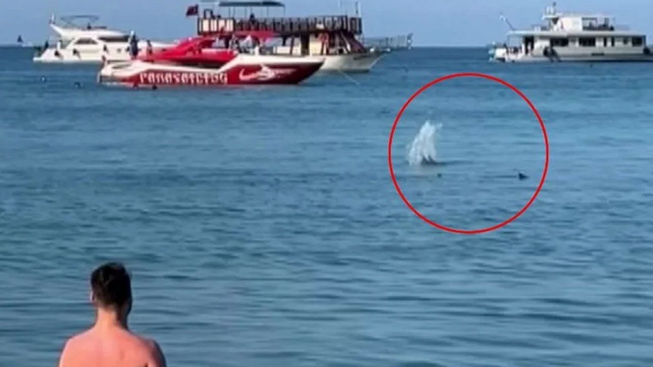 Kemer'de kıyıya yaklaşan bir canlı plajda yüzenleri telaşlandırdı. Sahildeki vatandaşlar, su yüzeyinde yüzgeçleri görünen canlıyı köpek balığı sanarak taşla uzaklaştırmaya çalıştı.