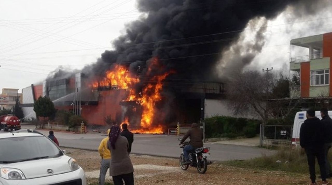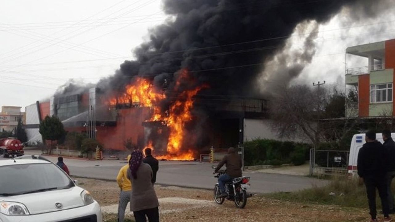 Antalya'nın Serik ilçesi Yenimahalle Mahallesi'ndeki tesis ve soğuk hava deposunda henüz belirlenemeyen nedenle yangın başladı.