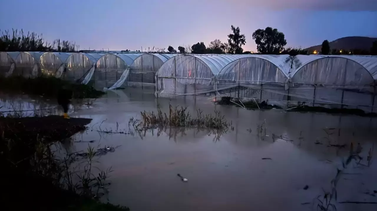 Finike ilçesine bağlı Hasyurt Mahallesi’nde de hortum seralarda hasara neden oldu. Yoğun yağış sonucu Yarbaşı Kanalı taşarken, tarım alanları sular altında kaldı.