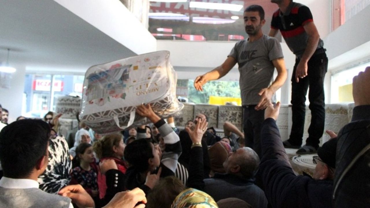 Muratpaşa ilçesinde bir halı mağazası, il dışındaki depodaki ürünlerini su bastığı gerekçesiyle ürünlerinin elde kalmaması için yüzde 70’e varan indirime gittiğini duyurdu. Mağaza indirim yapılacağı ürünlerin çeşidini ve fiyatlarını içeren broşürleri camlara astı. Fiyatları gören vatandaşlar mağazaya akın etti. 20 liraya markalı olduğu iddia edilen çift kişilik battaniye ve yorganları almak isteyenler izdihama neden oldu. Görevliler yüksek bir yere çıkıp, ellerini açan vatandaşlara halı ve battaniyeleri birer birer dağıttı. Aynı ürünü sahiplenen kişiler arasında kısa süreli tartışmalar yaşandı. Tartışma, görevlilerin müdahalesi ile büyümeden önlendi. Sadece bir ürün alma hakkı bulunan kişiler, aldıkları battaniye ve yorganla güçlükle dışarı çıkabildi. Bazı kadınların çocuklarıyla indirimli ürün almaya geldiği görüldü.