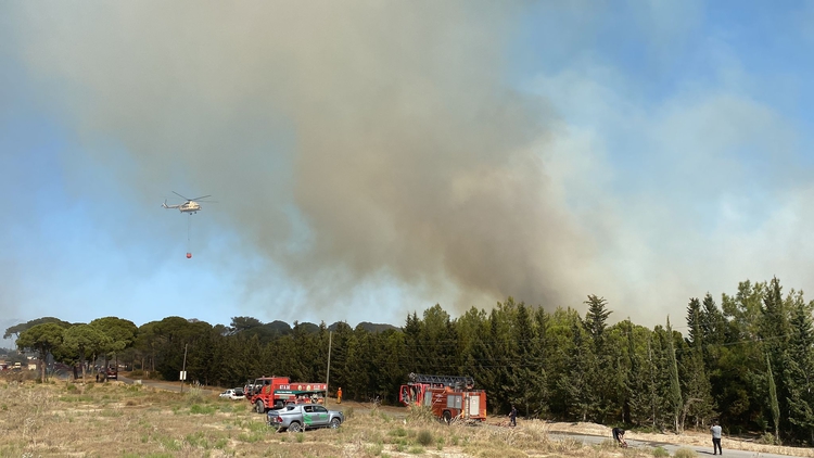 Bölgede yangını söndürmeye çalışan balıkçı Ali Taş, yangının kuru ve otluk bölgede çıktığını söyledi.