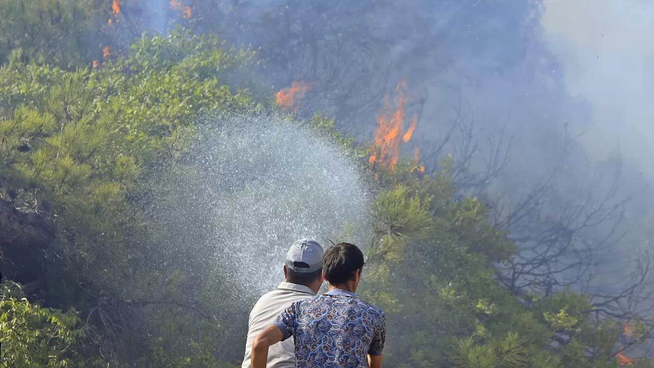 Yaklaşık 3 saattir süren yangın, ilk şiddetini azaltmış olsa da bölgede havadan ve karadan müdahaleler sürüyor. Ekiplerin bir kaç saat içerisinde yangını kontrol altına alacağı öngörülüyor.