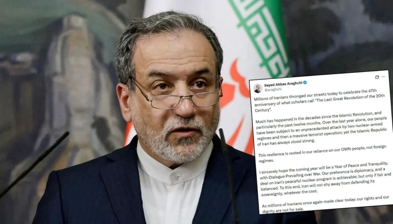 İran Dışişleri Bakanı Abbas Arakçi, sosyal medya hesabından yayımladığı mesajda İslam Devrimi’nin 47’nci yıldönümüne ilişkin değerlendirmelerde bulundu. Milyonlarca İranlının uzmanların "20. yüzyılın son büyük devrimi" olarak adlandırdığı İran İslam Devrimi’nin 47’nci yıldönümünü kutlamak için sokaklara çıktığını belirten Arakçi, son dönemde yaşanan gelişmelere dikkat çekti.