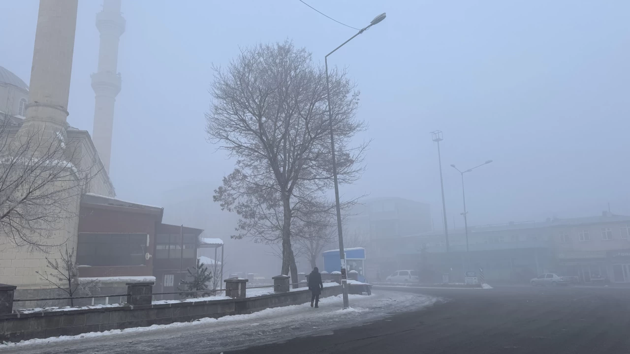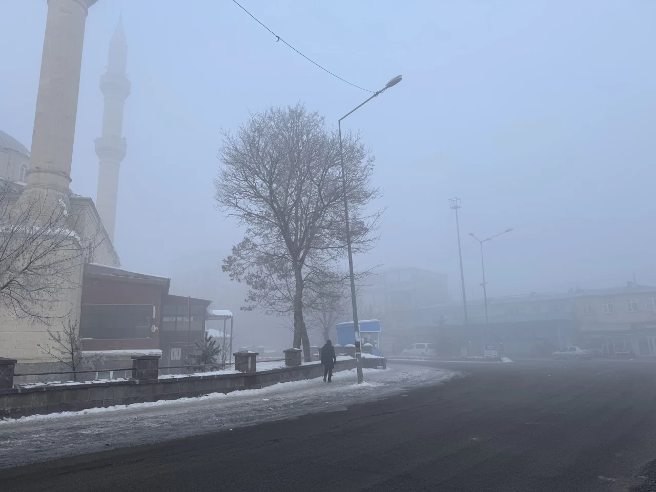 Gece termometrelerin sıfırın altında 23 dereceyi gösterdiği Ardahan'da, sis ve pus etkili oldu.