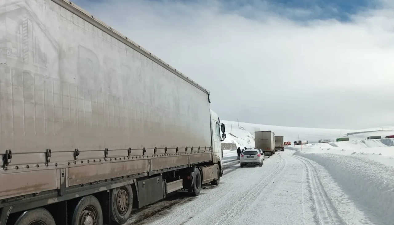 Karayolları 183. Şube Şefliği ekiplerince bölgede yapılan çalışmaların ardından yolda kalan tırlar kurtarıldı.