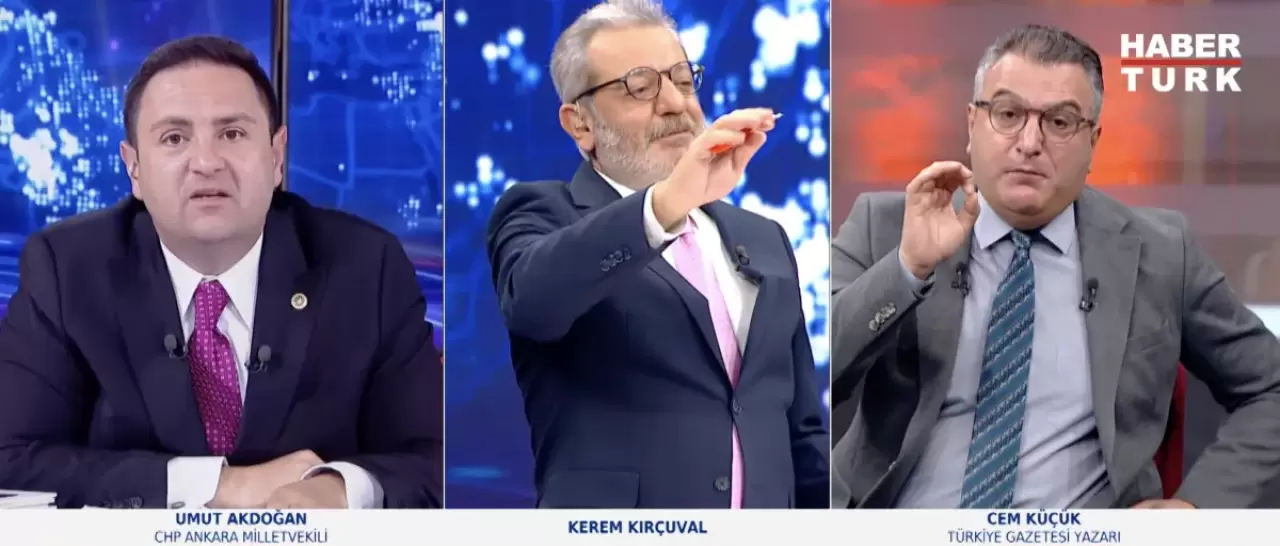 CHP’li Umut Akdoğan’ın konuk olduğu programda gazeteci Cem Küçük ile sert tartışmalar yaşandı. CHP'li belediyelerle ilgili yolsuzluk iddialarının konuşulduğu bir anda, CHP’li Umut Akdoğan’ın "Bizim arkadaşlarımız cezaevinde" sözleri üzerine Cem Küçük'ten sert bir cevap geldi.
