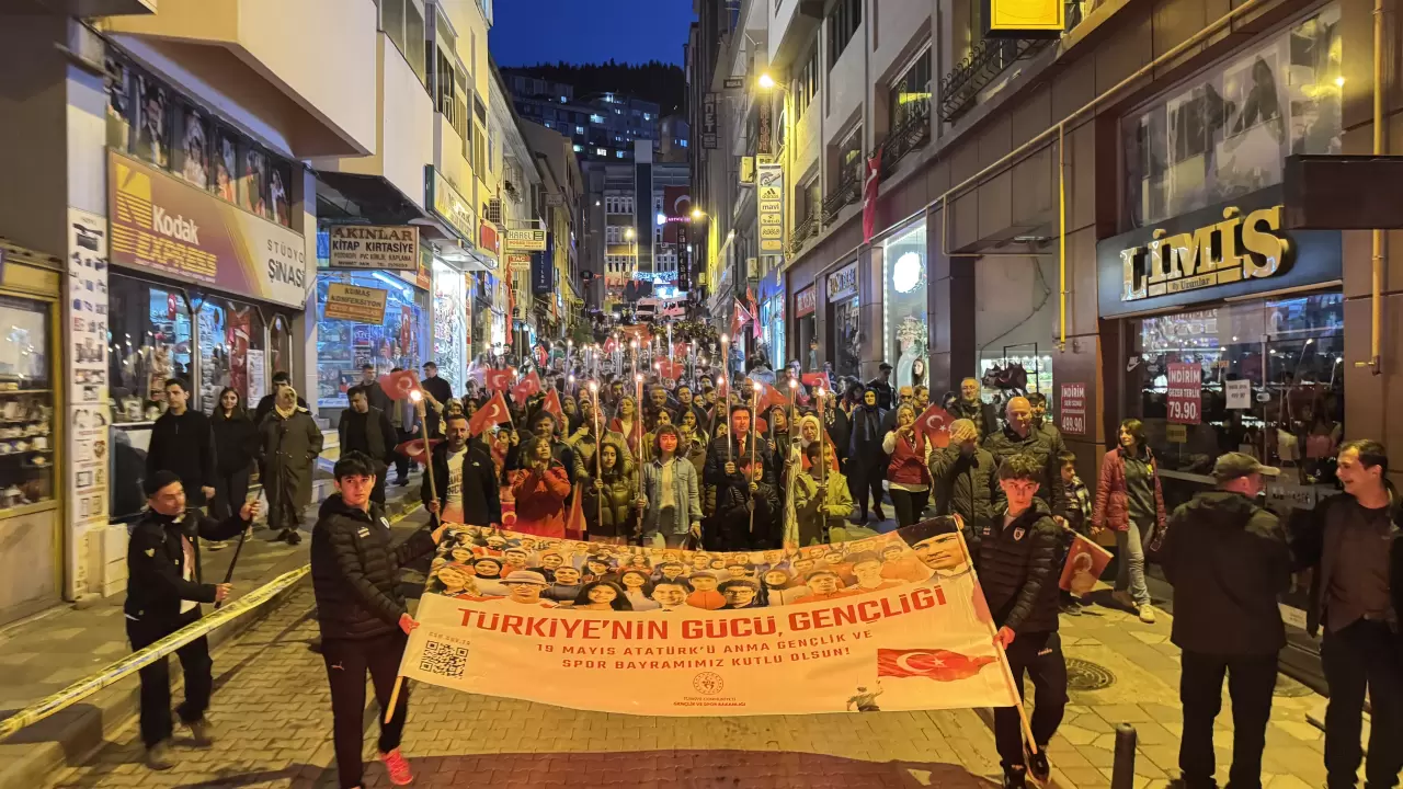 Artvin Gençlik ve Spor İl Müdürlüğünce düzenlenen etkinlik kapsamında yüzlerce kişi, Türk bayrakları ve meşalelerle Atapark Meydanı'nda toplandı.