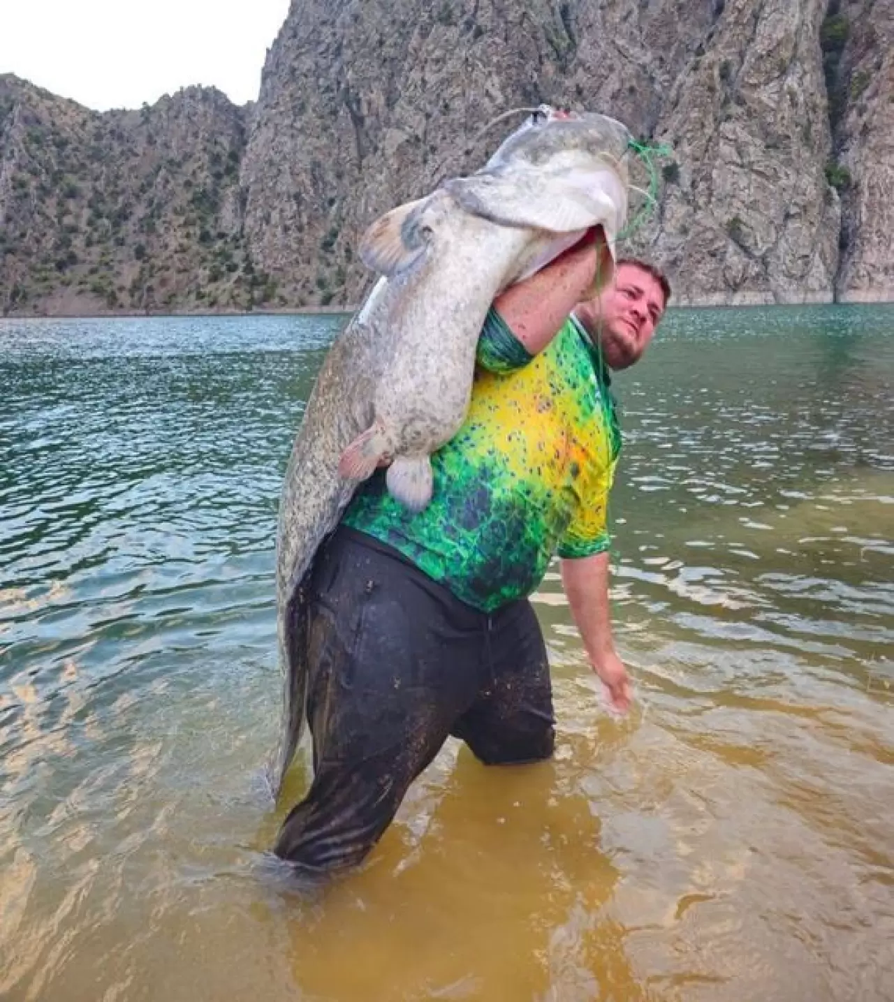 Artvin'in Borçka ilçesinde amatör balıkçılar, baraj gölünde devasa boyutlardaki iki yayın balığı yakalayarak görenleri hayrete düşürdü.