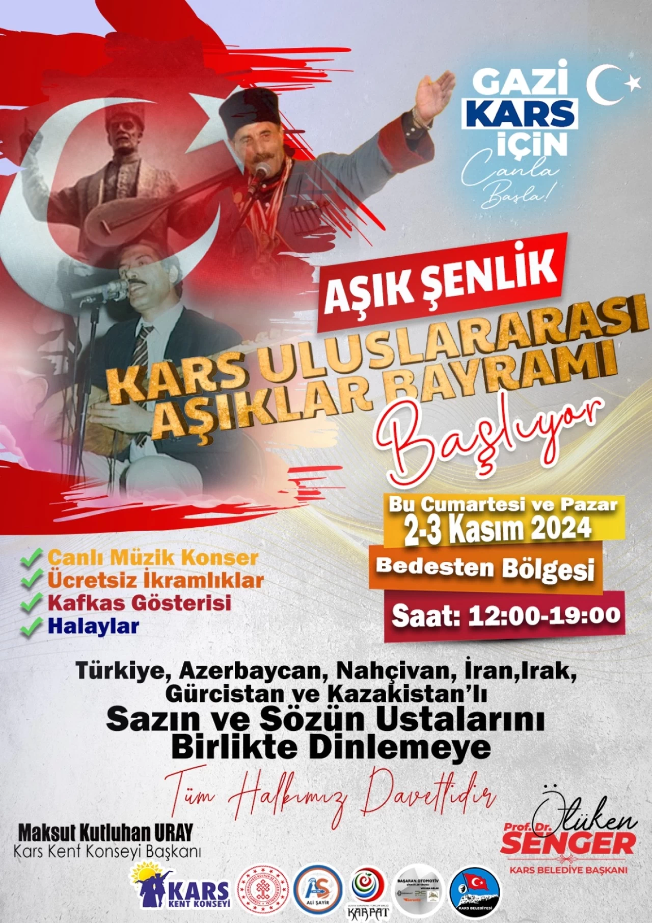 2-3 Kasım 2024 tarihlerinde Bedesten Bölgesi’nde düzenlenecek olan etkinlikte Türkiye, Azerbaycan, Nahçivan, İran, Irak, Gürcistan ve Kazakistan’dan gelen saz ve söz ustaları bir araya gelecek. Kültürel bir şölen niteliğindeki bu organizasyonda, halkımız, geleneksel müziklerin keyfini çıkarma fırsatını bulacak.