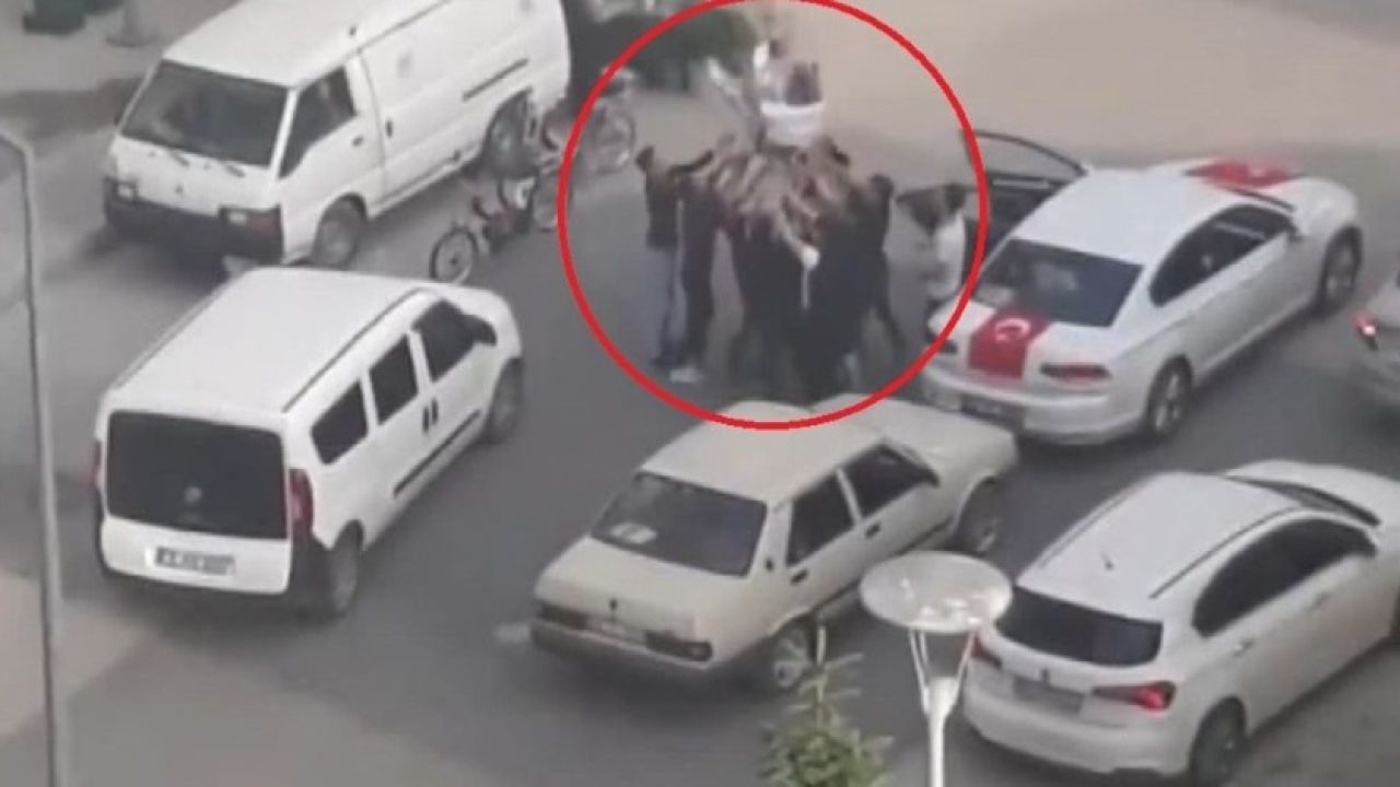 Yaklaşık 8 araçlık konvoy oluşturan gençler, cadde üzerinde araçlarından inerek, askere gidecek olan kişiyi havaya attı.
