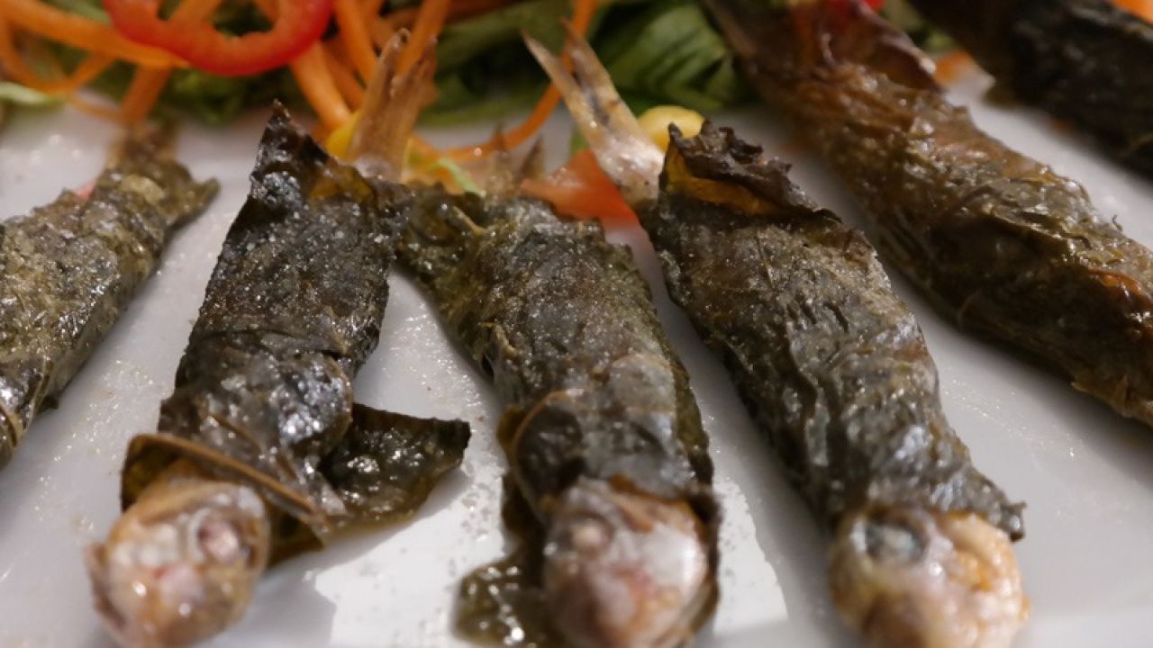 Balıklar 1 gün evvelinden marineye yatırılır.sonra asma yaprağına sarıp fırında gözleri beyaz olana kadar pişiririz.